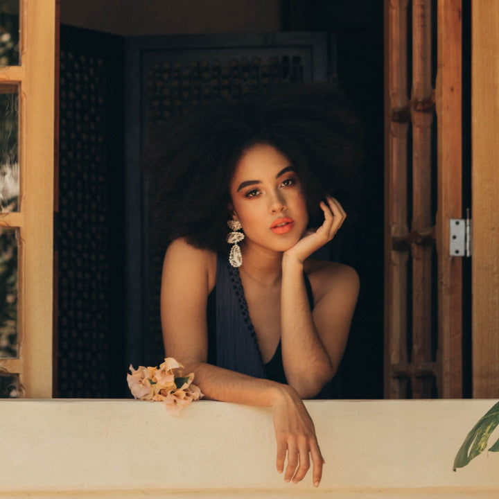 These Alma Golden Asymmetric earrings by Mamba are a testament to finding beauty in the unconventional. Part of the "ALMA" collection, they are about returning to our center, reuniting with ourselves, and appreciating the simple things that give us happiness. The unique, handcrafted design speaks to the magic of Mamba and its artisan production. These pieces are a bold statement that are a celebration of individuality.