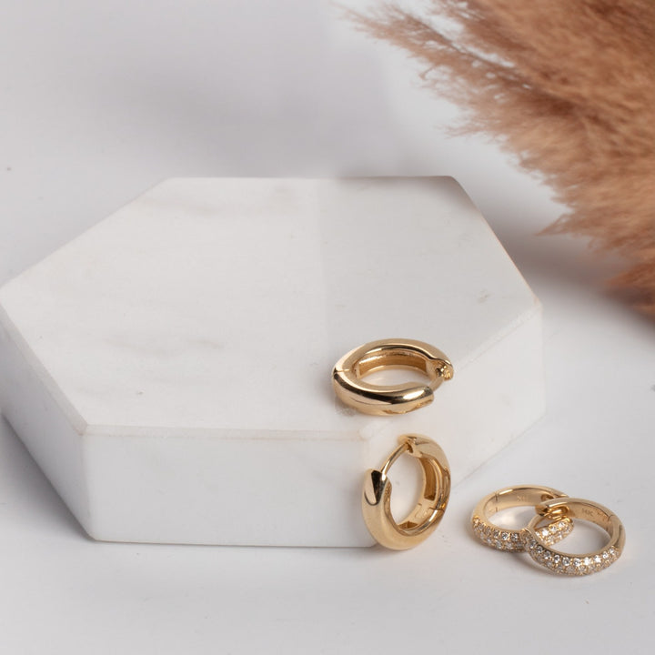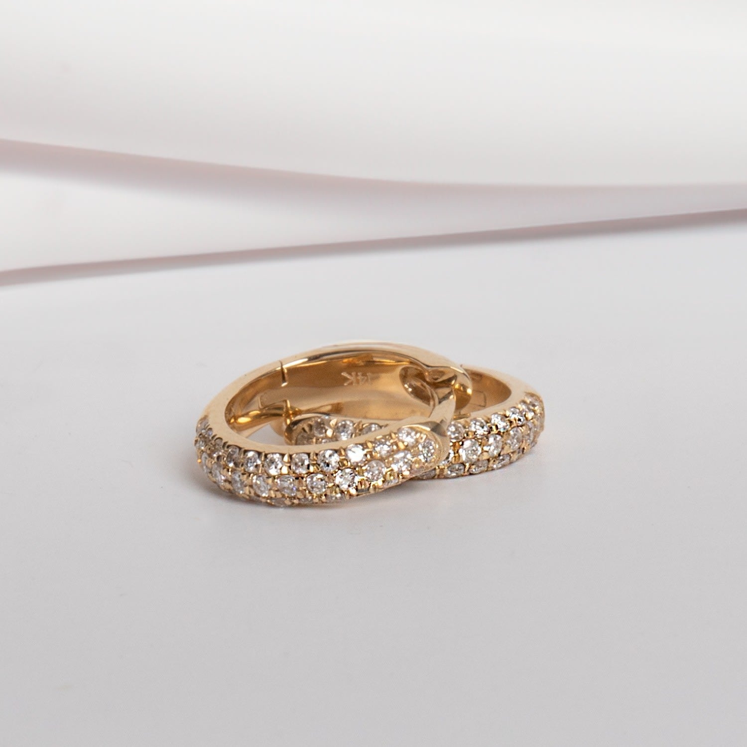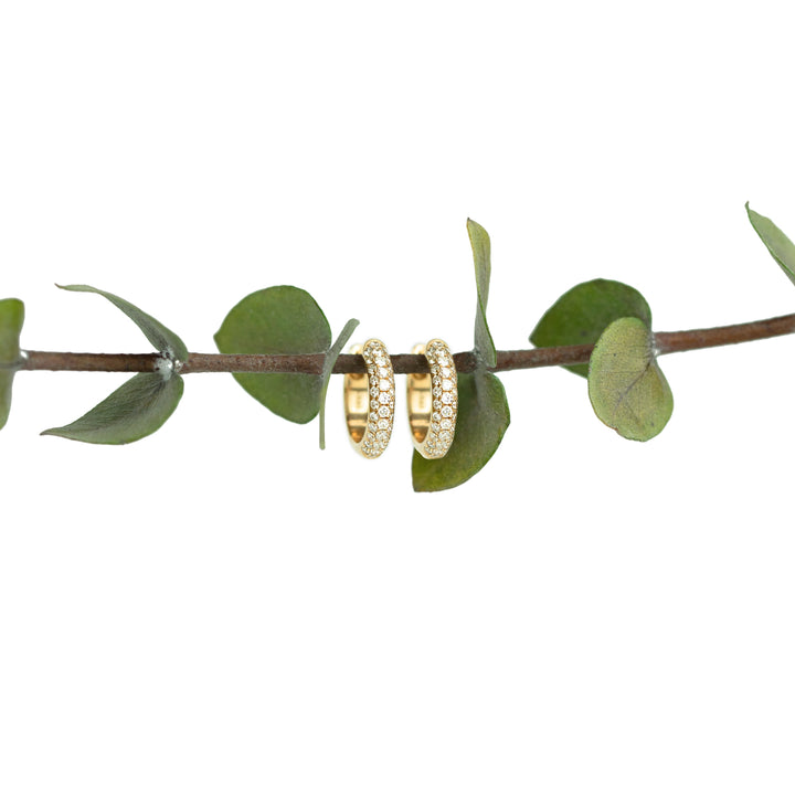 These hoop earrings are crafted from solid 14k yellow gold with 0.32ct of pavé diamonds. The hoop has a diameter of 1/4 inch.