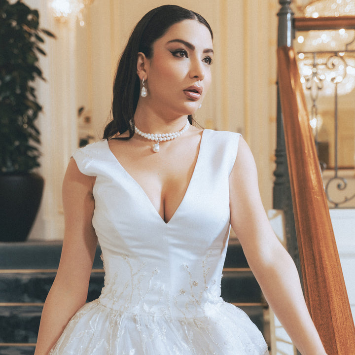 The Duchess Strand: Double Pearl Collar by Mayfair Pearls is an elegant and luxurious statement necklace. It features two rows of perfectly matched freshwater pearls with a stunning baroque pearl drop centerpiece. The design is ideal for weddings, formal events, or adding a sophisticated touch to everyday ensembles.