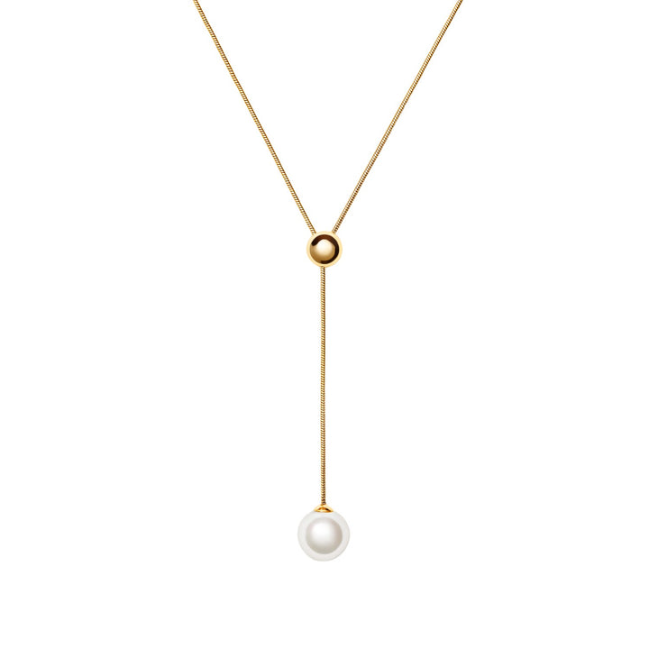This necklace is made from 316L stainless steel with an 18K gold plated finish and features a 16mm pearl.
