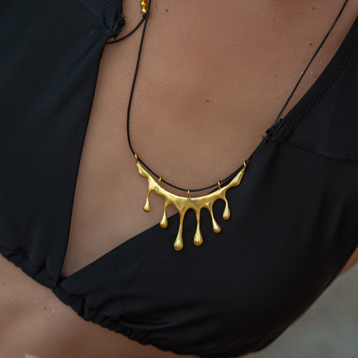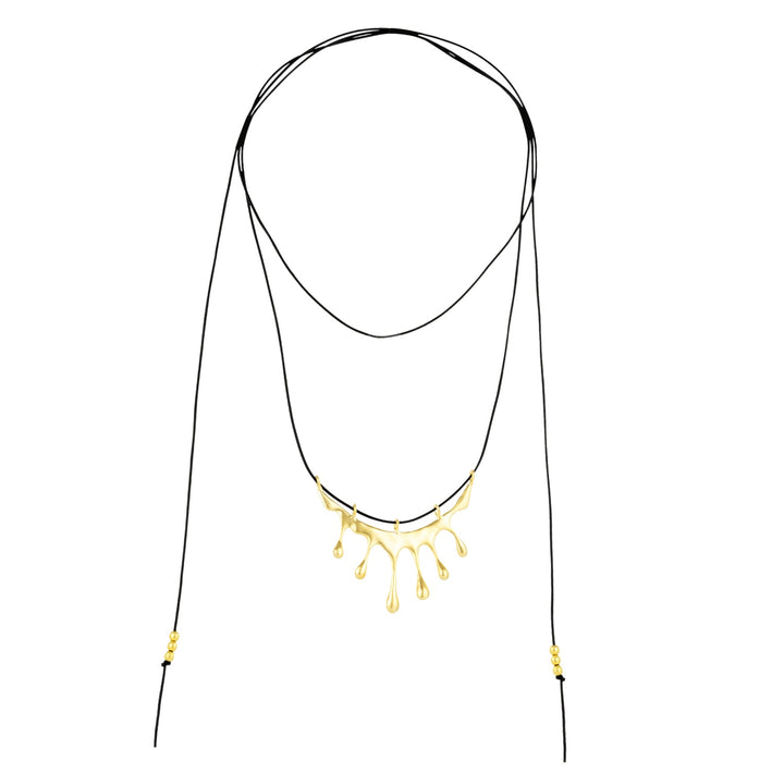 Dripping Gold Large Melting Black Cord Rope Necklace