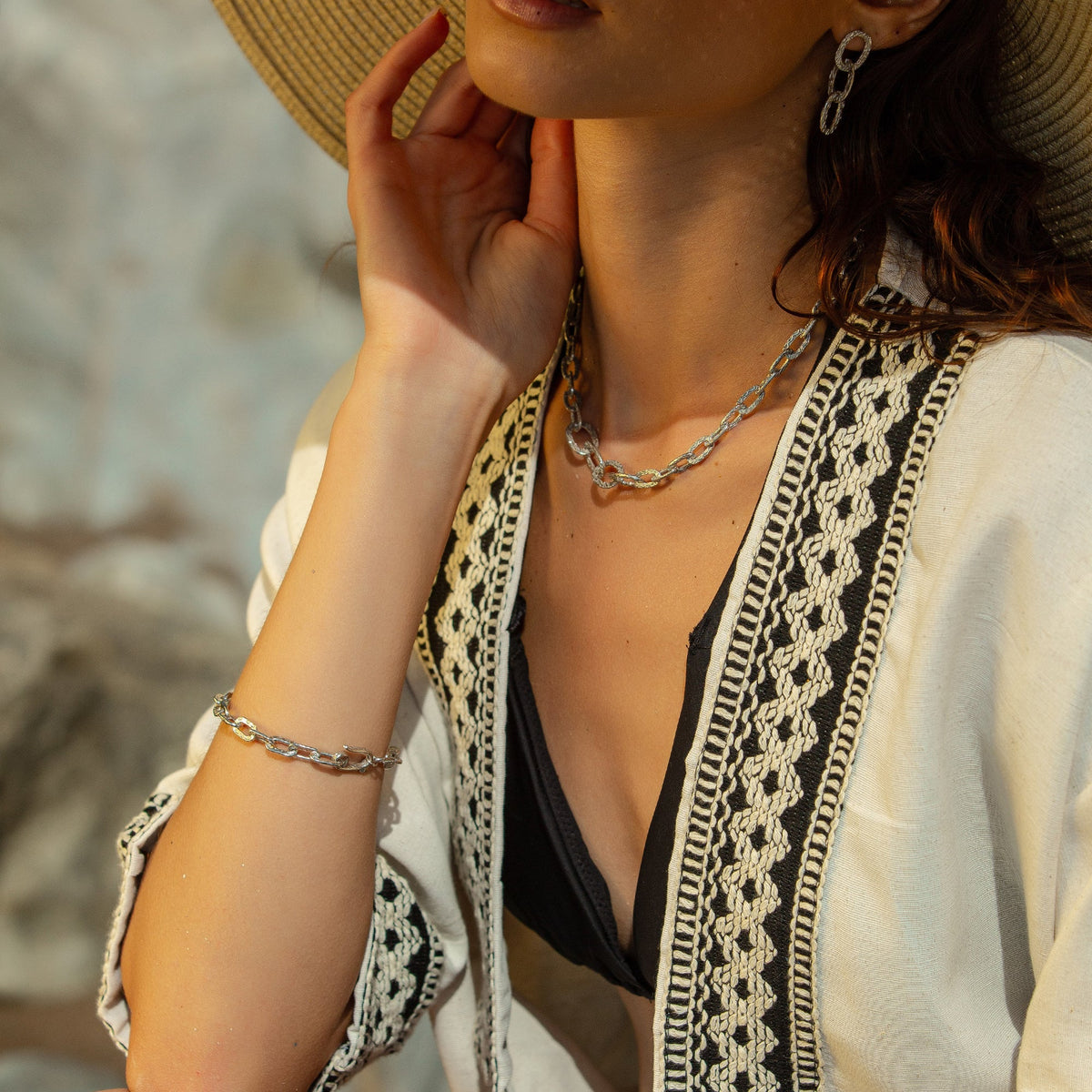 This Ancient Allure Textured Silver Link Necklace & Bracelet Gift Set by Mejoma is a luxurious and sophisticated set. Made with exquisite craftsmanship, this set features textured silver links that add a touch of ancient allure to your ensemble. This perfect pairing is a great way to elevate your style.