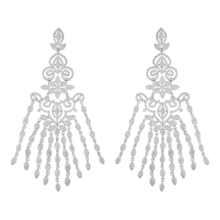 The Celeste Earrings by Meraki by Rashmi Bajaj are a dazzling representation of sophistication and elegance. These chandelier-style earrings feature a meticulous design adorned with high-quality American diamonds that exude luxury and timeless beauty. The intricate patterns and cascading design make them an ideal choice for special occasions, adding a touch of glamour to any outfit.