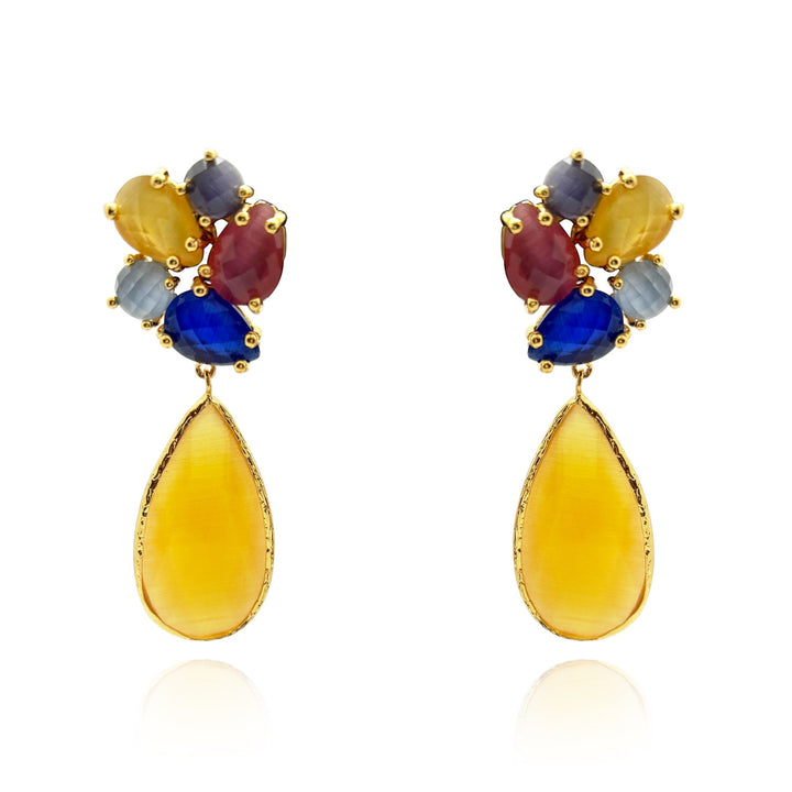 Multi-Color Cat's Eye Pierced Earrings With Yellow Amber Drop