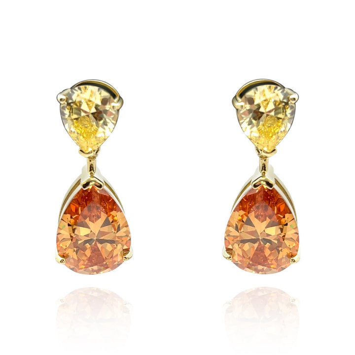 The Canary And Brown Diamond Cubic Zirconia Pear Shaped Drop Earrings by Michael Nash Jewelry are a stunning and versatile accessory. The combination of dazzling canary yellow and rich brown cubic zirconia stones creates a sophisticated and striking blend of colors. These earrings are a perfect blend of elegance and charm, ideal for a variety of occasions, from a casual lunch to a formal gala.