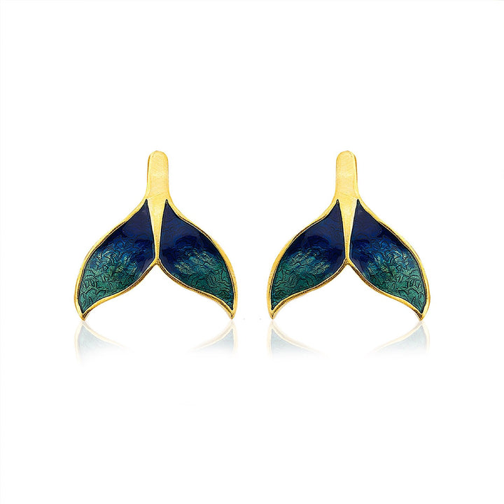 Green & Navy Blue Whale Tail Earrings
