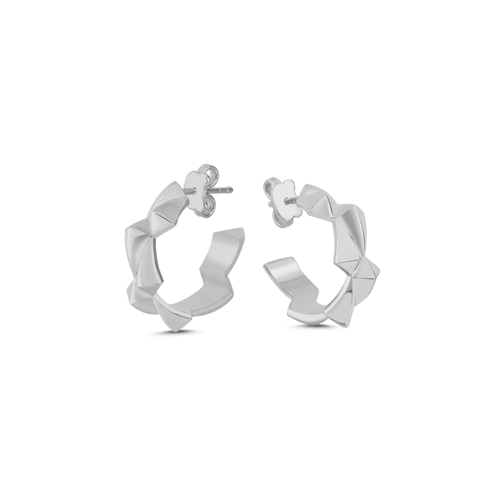 These unisex huggie hoop earrings are made from 925 sterling silver with a 22k rhodium plating. They are nickel-free and hypoallergenic.