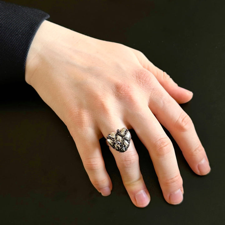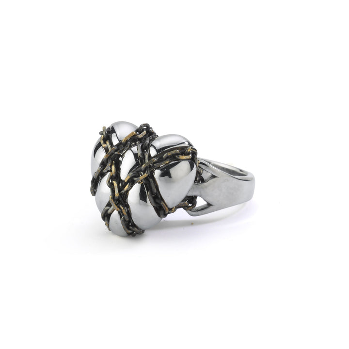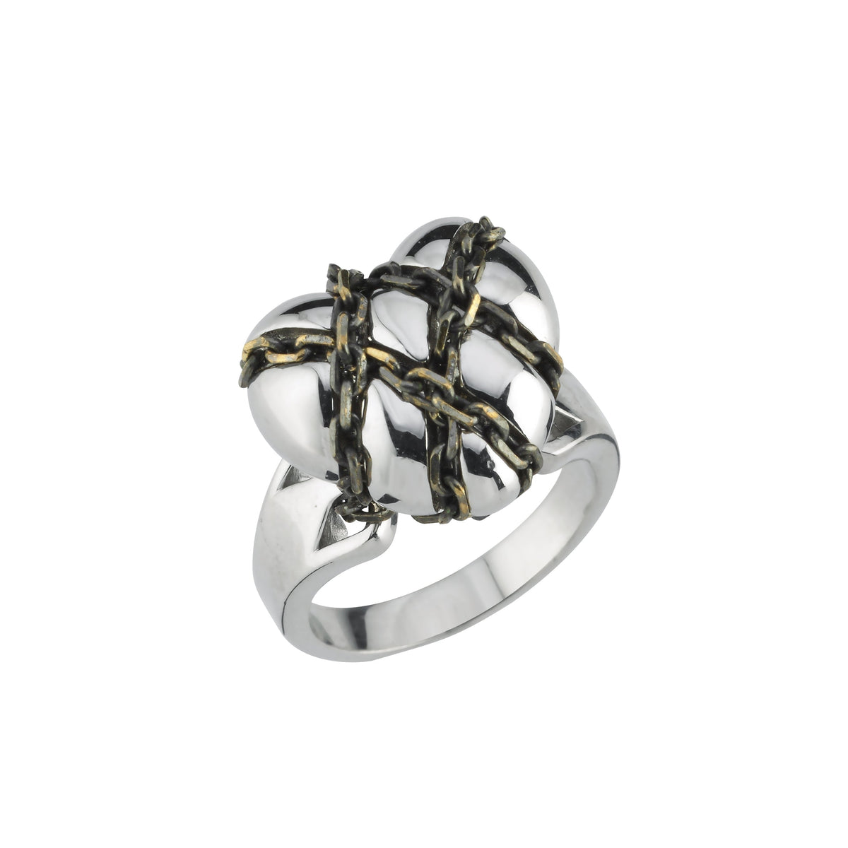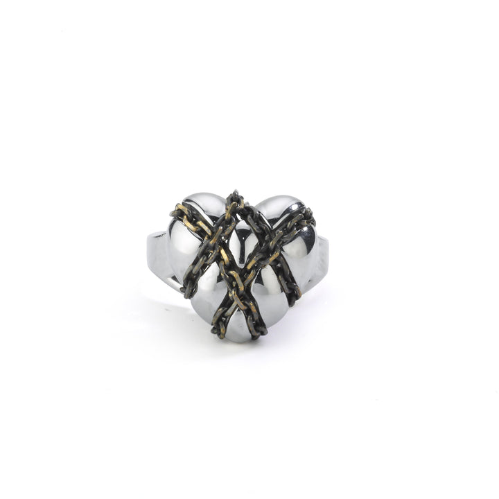 The Chained Love Ring Silver by Mishka is a unisex ring that's a sculptural expression of love's duality. The design features a sculptural silver heart chained to the ring, symbolizing the power of attachment while maintaining a fluid, dynamic feel. Made from 925 sterling silver with rhodium plating, it's an intricately handcrafted piece that's both durable and brilliant.