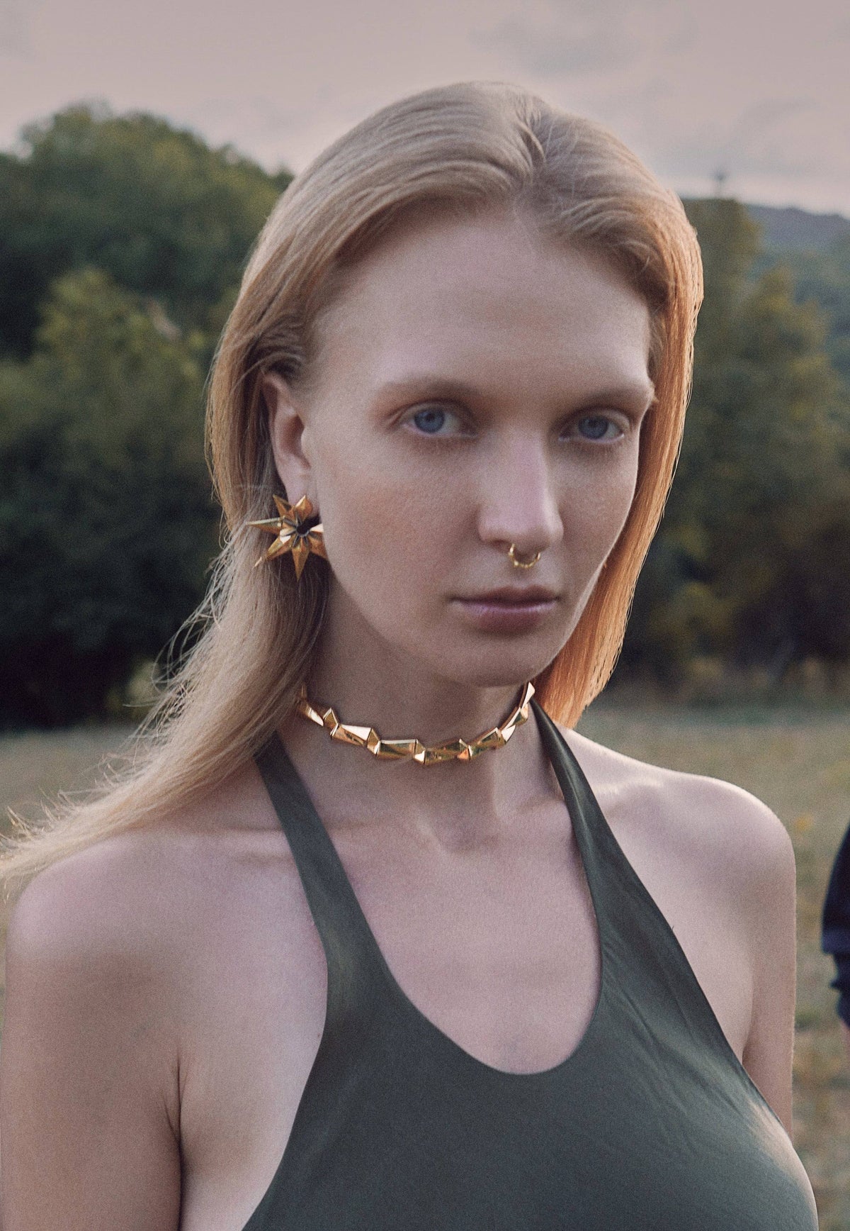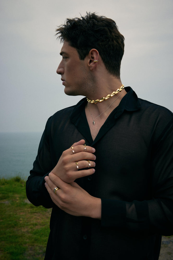 This Ember Necklace by Mishka is a bold and captivating choker from the Urban Wilds Collection, designed to make a daring statement. Its elongated pyramid details are stylized to resemble a lizard frill, creating a strong visual impact that demands attention and sets you apart from the crowd. With a specially designed lock and meticulous artistry, this piece embodies the essence of daring elegance.