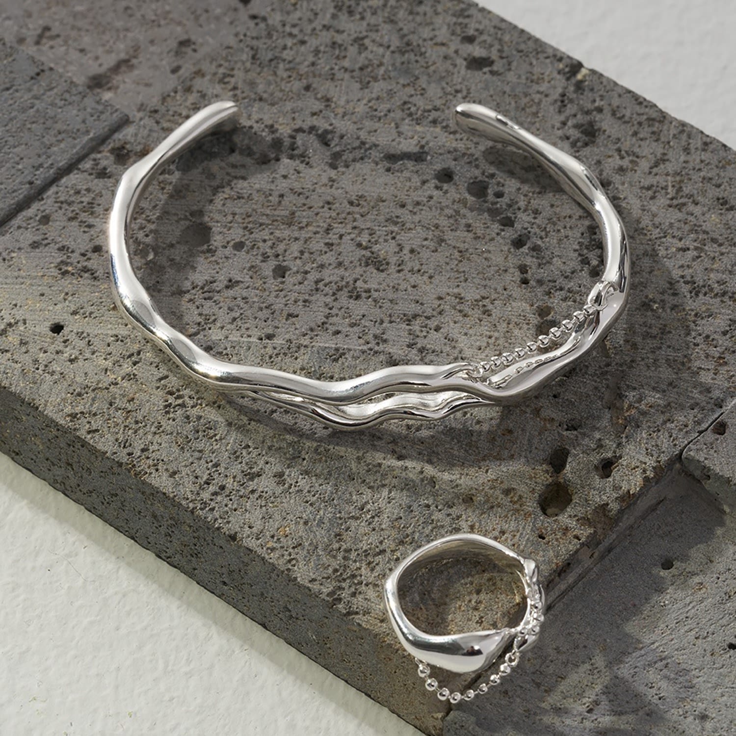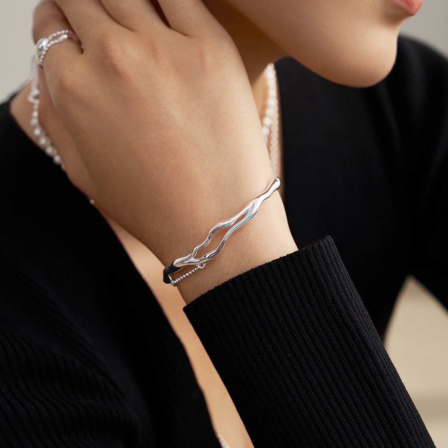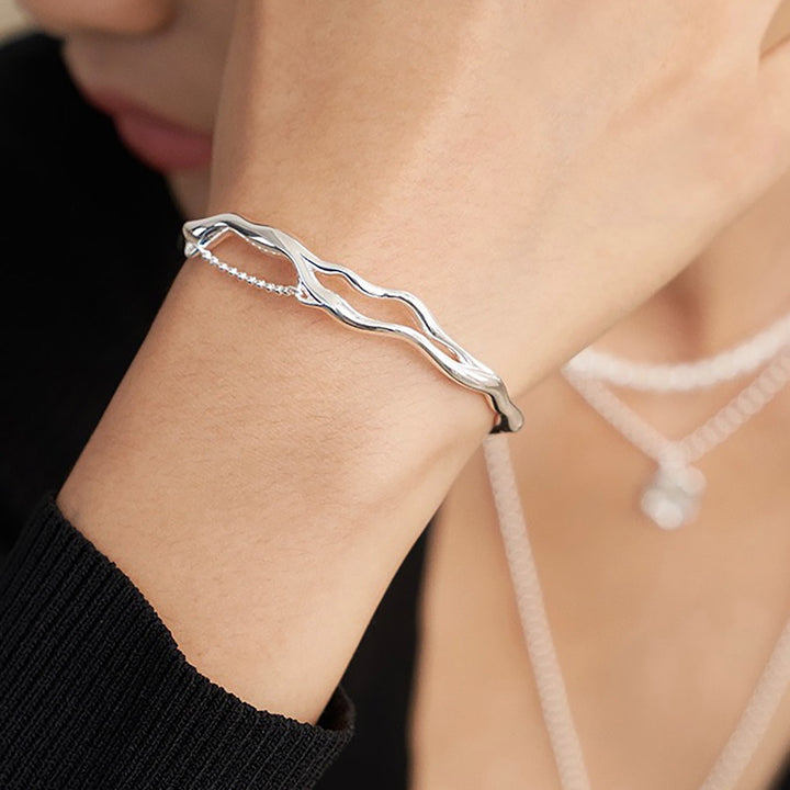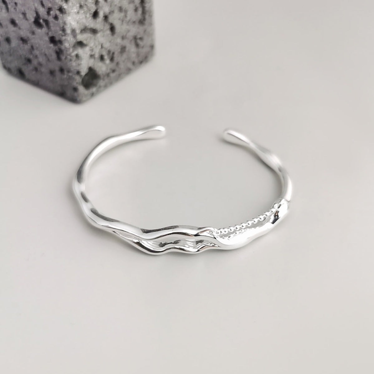 This bangle is a branch-shaped adjustable bracelet made of 925 sterling silver.