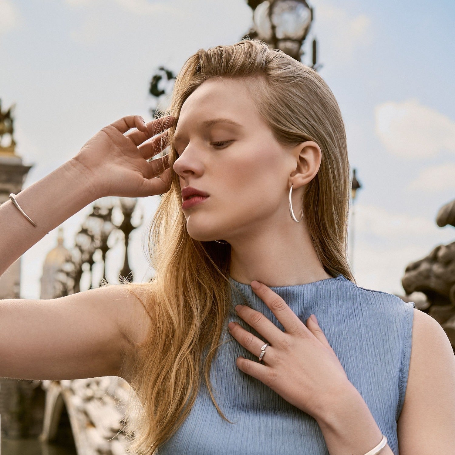 These Hiba Hoops by Nabs and Babs are elegant, lightweight, and easy-to-wear hoops with an organic design. They create a subtle yet dynamic profile, making them an effortless choice for everyday style that stands out without overwhelming your look.