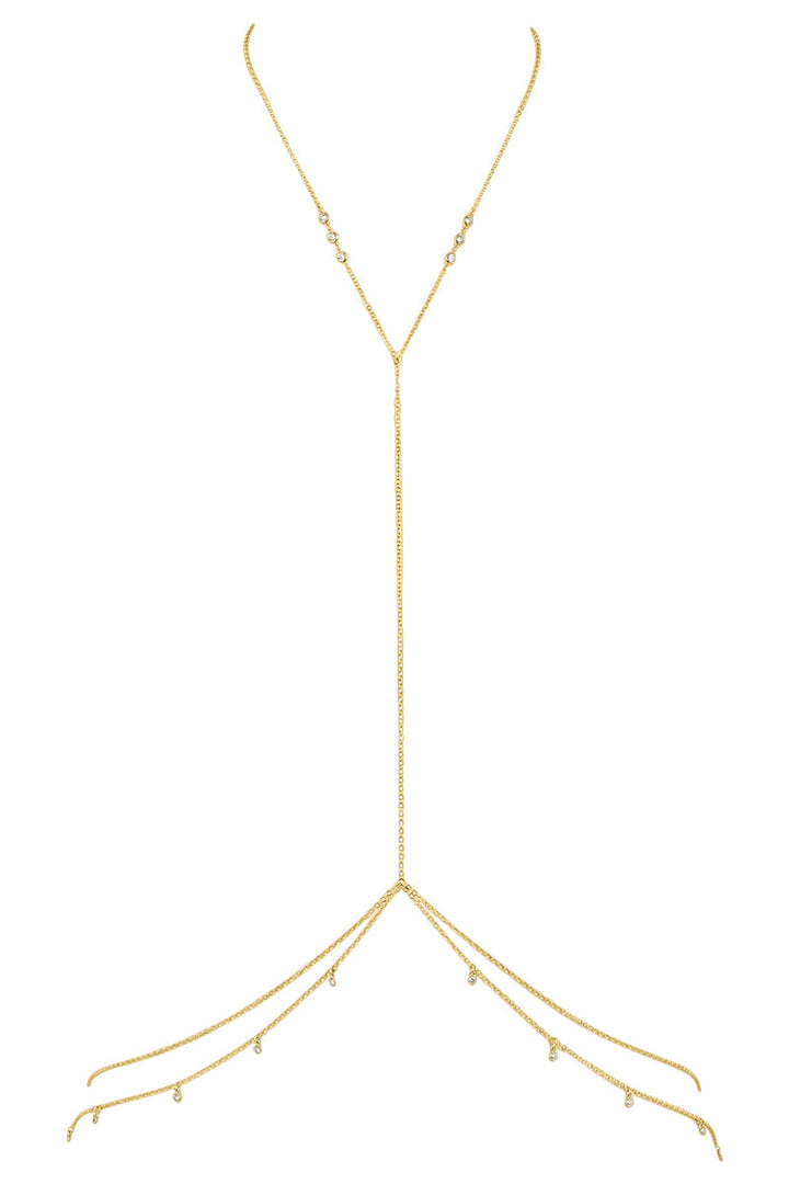 Leigh Cz Gemstone & Gold Body Chain & Necklace