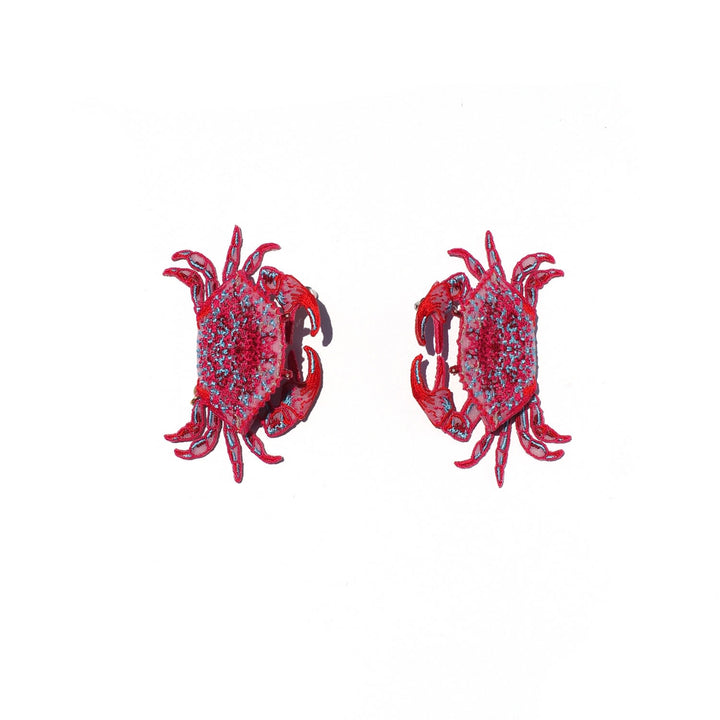 Crab Embroidery Earrings - Red