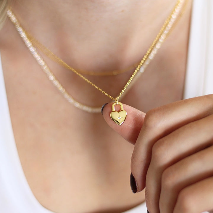 This necklace is made with a 100% recycled Sterling Silver base with a thick layer of high-quality 14k gold plating. It is set with a cubic zirconia stone.