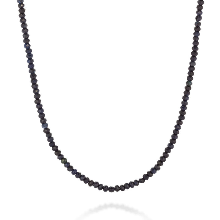 This Sapphire Mini Bead Necklace by Nellou Jewellery is a stunning necklace featuring tiny faceted sapphire gemstones, hand-set to create a touch of natural beauty. It fastens with a sterling silver clasp and is perfect for layering with other necklaces. This piece allows you to enhance your style with vibrant elegance.
