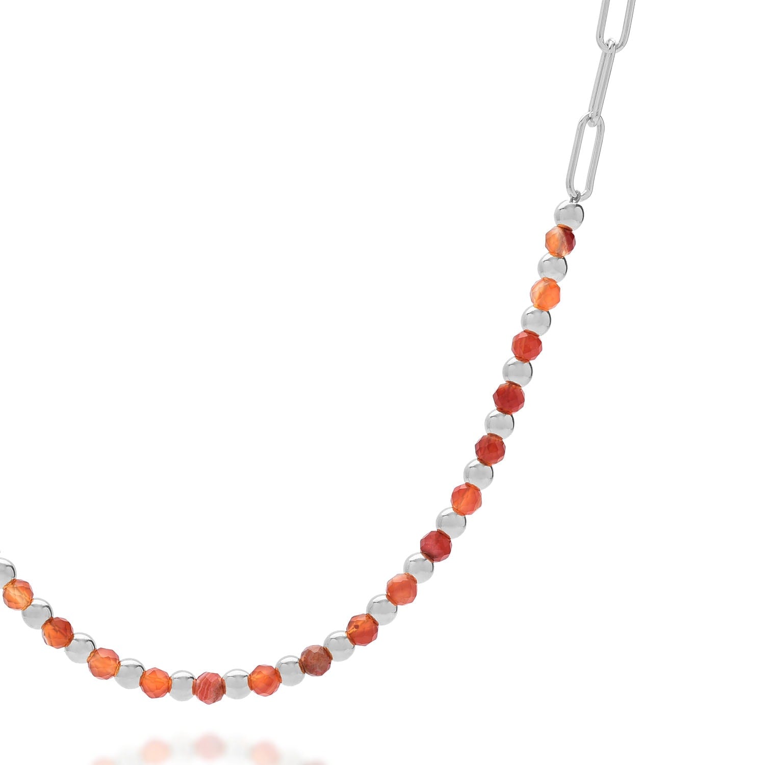 This necklace is handcrafted from eco-friendly sterling silver and features faceted carnelian gemstones on an adjustable paperclip chain.
