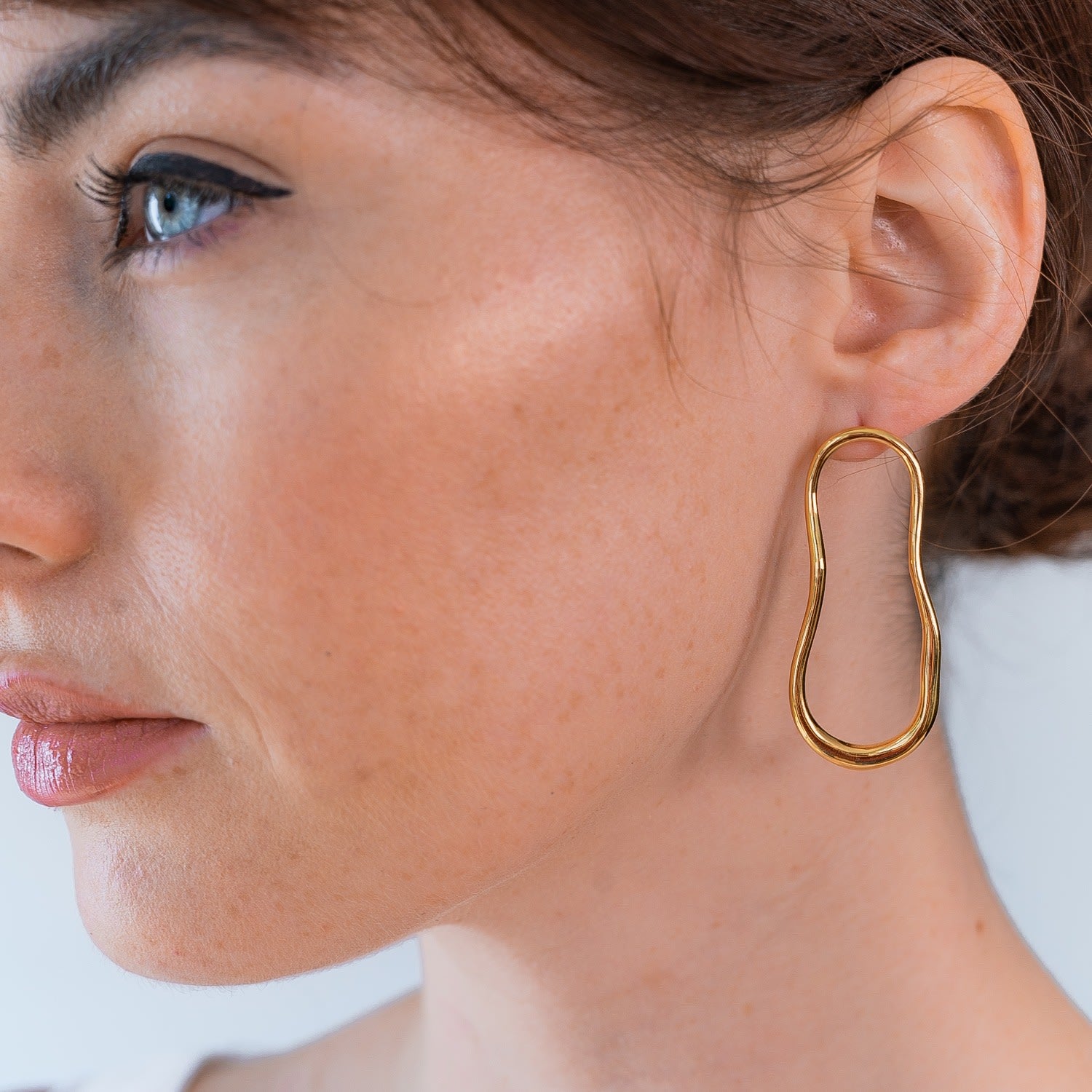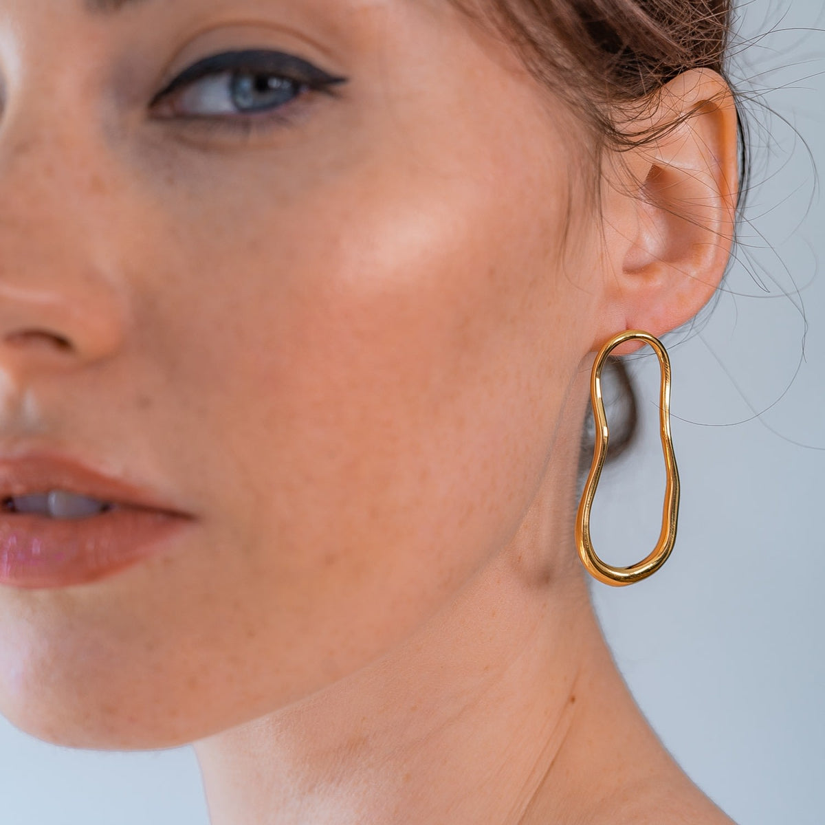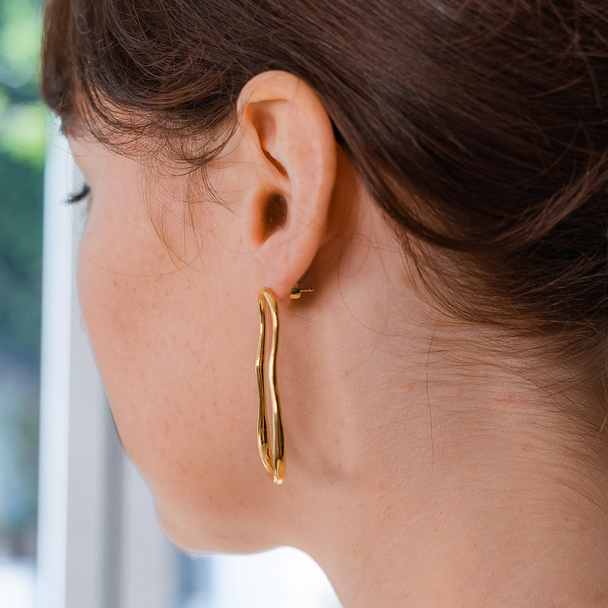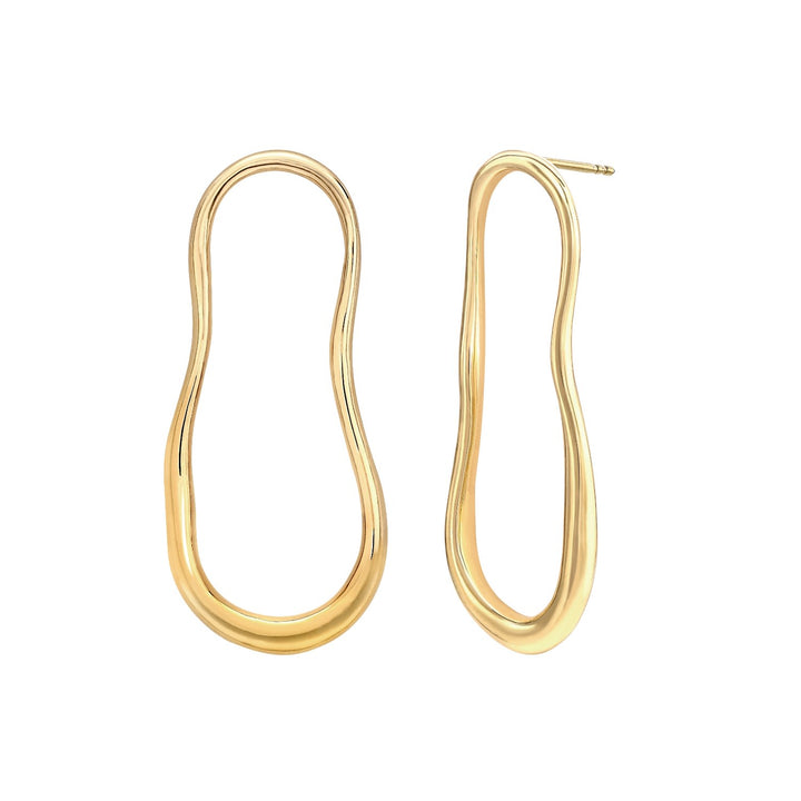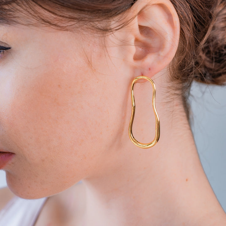 The Gold Earrings Sculptured Lava by Neola Design are a unique and contemporary accessory. These hoop earrings have an organic and fluid shape, inspired by molten lava. Handcrafted in 18ct gold vermeil on sterling silver, they are a modern twist on a classic hoop and a statement piece that can be worn for both day and evening wear.