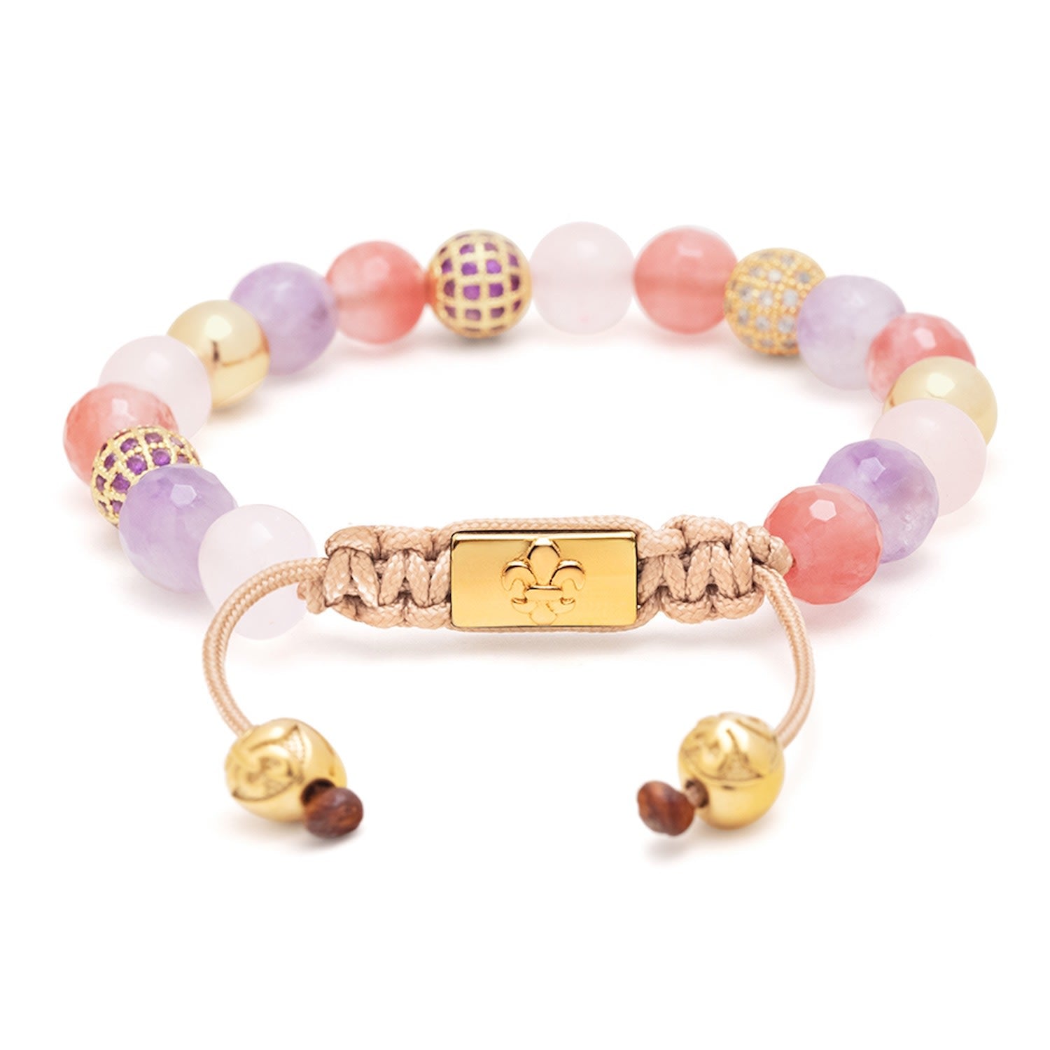 Women's Beaded Bracelet With Rose Quartz, Amethyst, Cherry Quartz And Gold