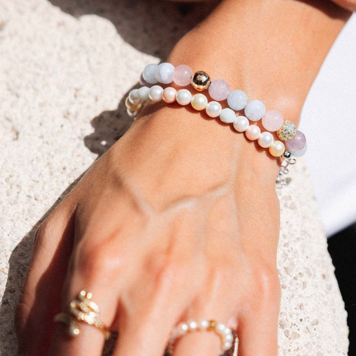Women's Beaded Bracelet With Aquamarine, Blue Lace Agate, Rose Quartz, And Amethyst Lavender