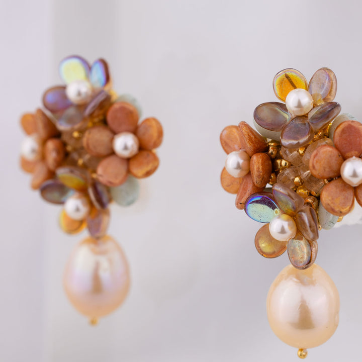 These Flower Bridal Bridesmaids Gifts Stud Earrings by Oanasavu.creations are a whimsical and romantic choice, perfect for special occasions. The intricate flower bouquet design, combined with luminous Swarovski centers and a baroque freshwater pearl drop, creates a delicate and elegant feel. These earrings are ideal for weddings or any event that deserves a little more sparkle, representing a blend of natural and refined beauty.