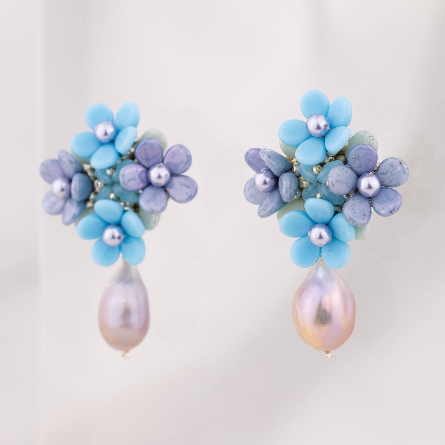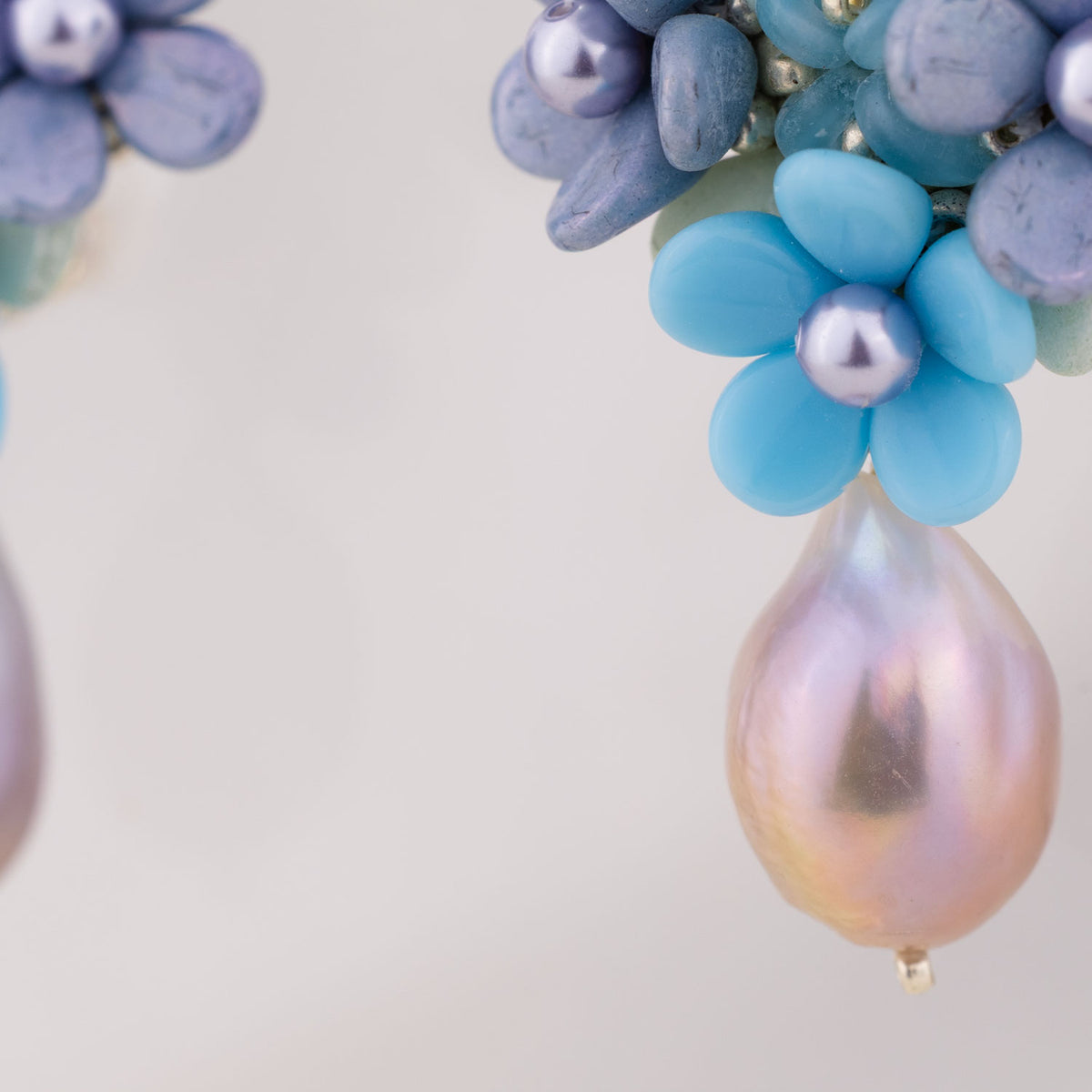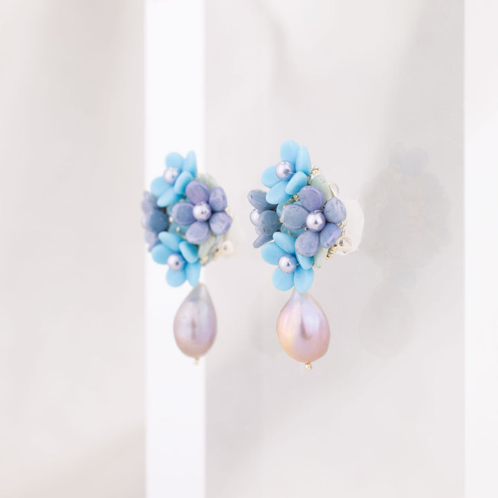 These Blue Flowers Earrings by Oanasavu.creations are a whimsical and elegant accessory, perfect for adding a touch of sparkle to any day. Featuring a bouquet of intricate glass beads and luminous Swarovski pearls, these earrings capture the magic of a garden in bloom. The addition of a baroque freshwater pearl drop adds an organic, enchanting element, making them feel both romantic and refined. Ideal for weddings, special events, or simply for elevating a look with a dose of dreamy charm.
