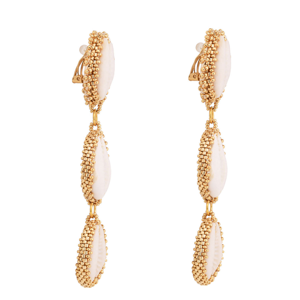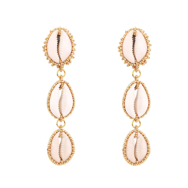 Sea Shells & Gold Glass Beads Long Statement Earrings