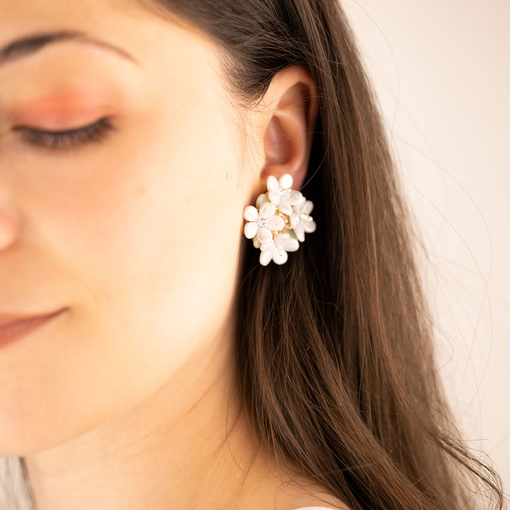The Red Ear Studs by Oanasavu.creations are delicate, hand-stitched earrings that bring a soft, floral glow to your look. Each one is a miniature bouquet of four tiny flowers made from glass beads and luminous Swarovski Pearls. These earrings are more than accessories; they are envisioned as heirlooms that carry stories and love, perfect for adding a charming and elegant touch to any celebration.