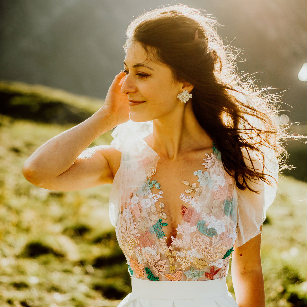 The Bridal Flower Earrings by Oanasavu.creations are a delicate and striking accessory designed to bring a soft, floral glow to your look. Each earring is a miniature bouquet of four hand-stitched flowers made from glass beads and luminous Swarovski pearls. These elegant earrings, originally created for a wedding, are intended to be cherished heirlooms.