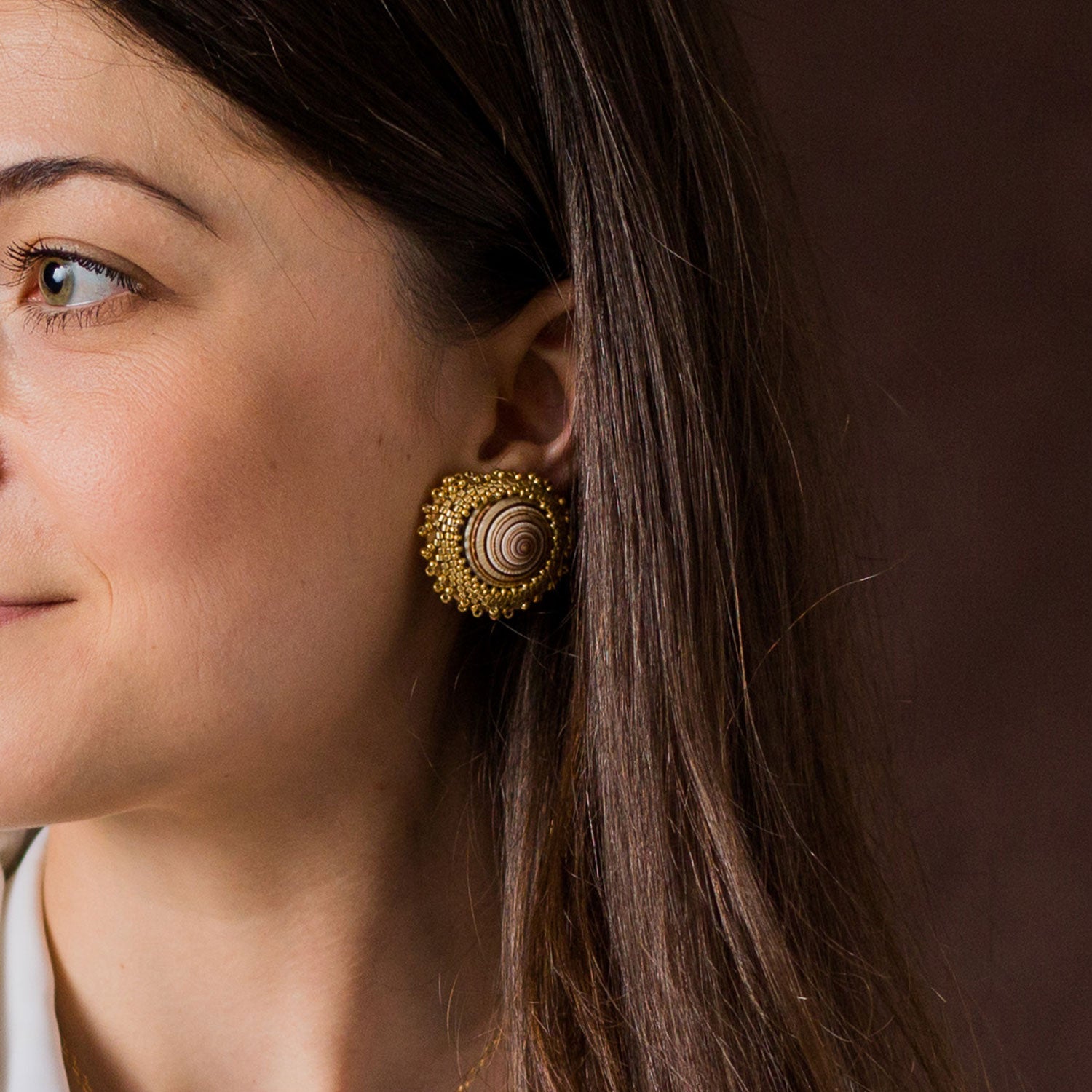 These La Mer Shells & Gold Beads Unique Earrings by Oanasavu.creations are a perfect go-to statement for summertime. Dedicated to the ocean, these earrings feature real shells meticulously hand-sewn with hundreds of golden glass beads. The result is a lightweight yet captivating design that celebrates the unique, natural shapes of each shell. These earrings embody a love for the ocean and conscious craftsmanship, making each pair a unique piece to wear with pride.