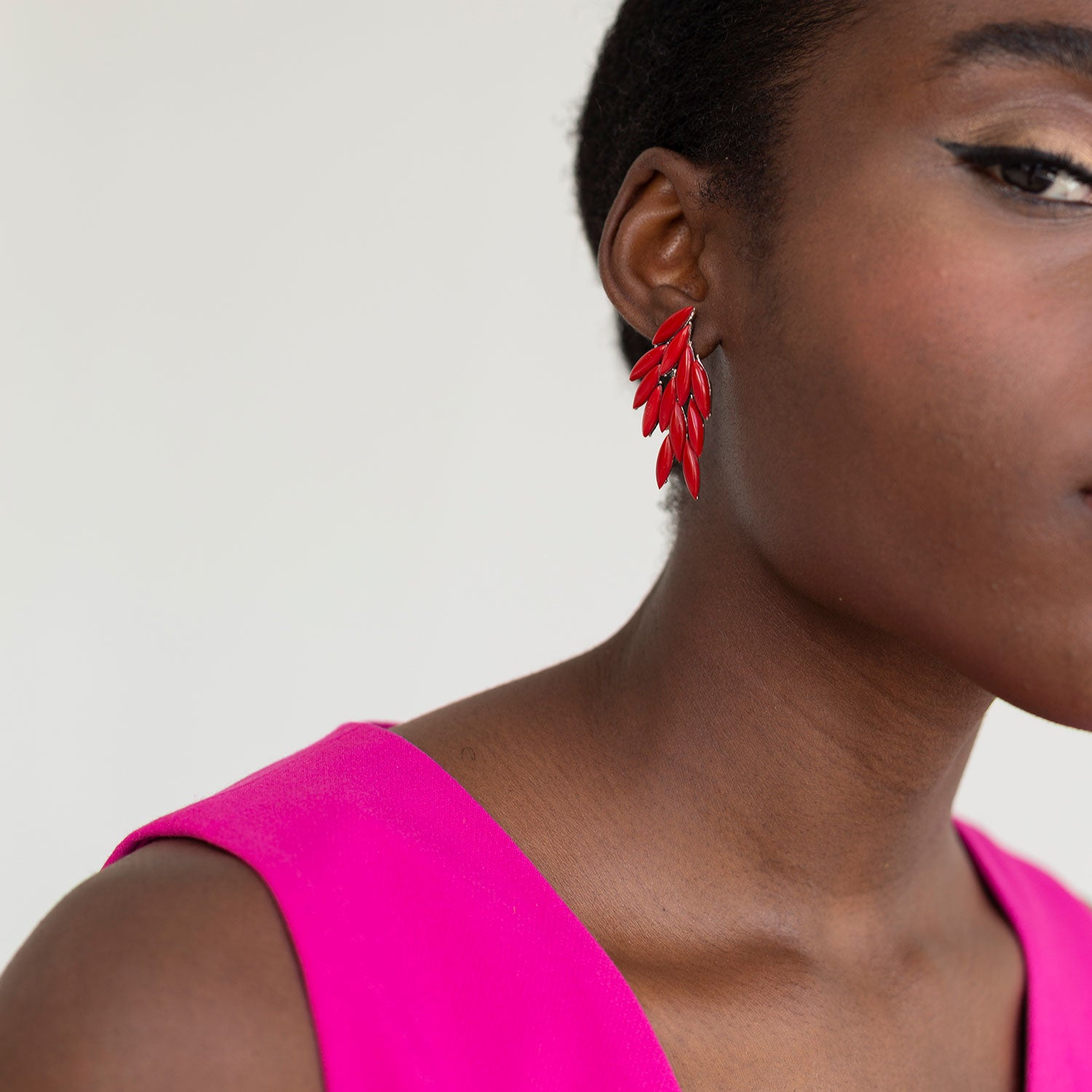 These Azael Curaçao Earrings by Obsidian are a sophisticated and glamorous statement piece. The wing-shaped earrings are crafted from sterling silver with an antique finish and feature striking green copper turquoise stones. Their timeless design makes them perfect for adding a touch of bold elegance to any outfit, whether for a casual day or a special occasion.