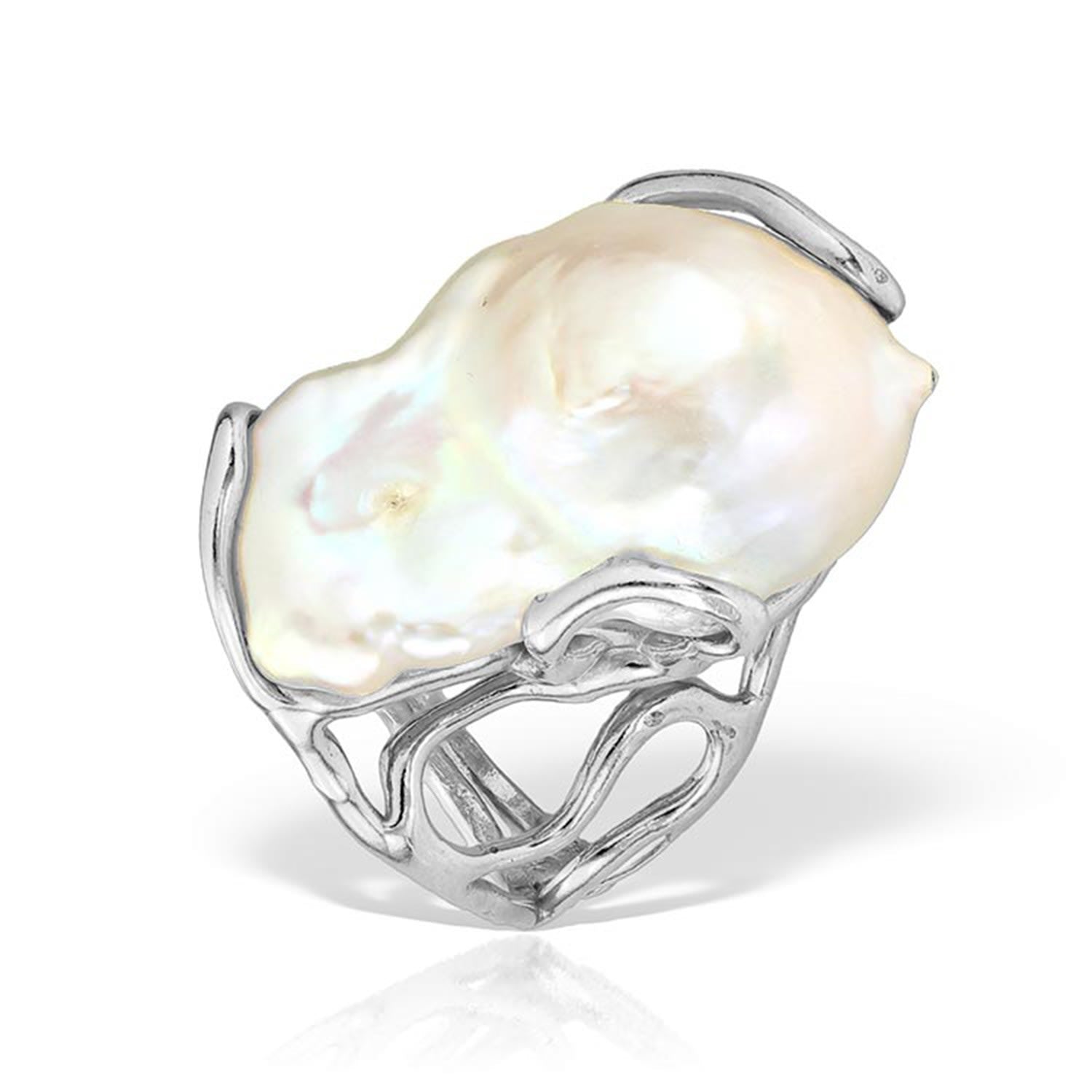 Disorder Baroque Pearl Ring, Sterling Silver