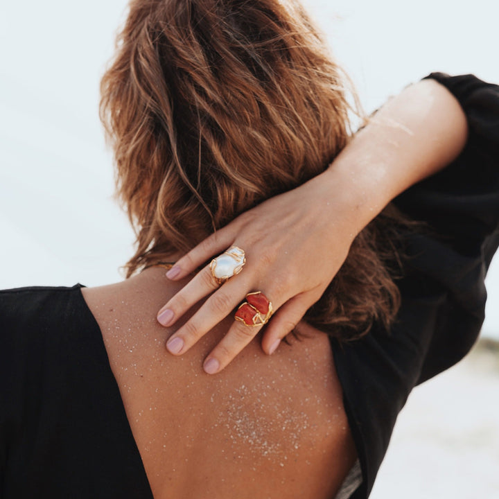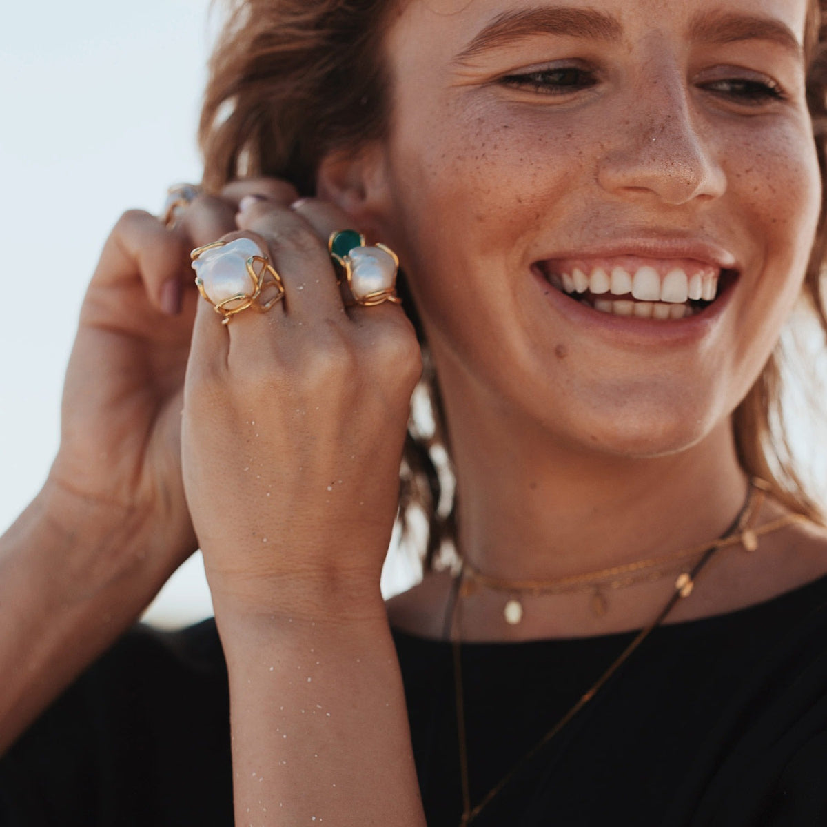 This Disorder Baroque Pearl Ring - Gold Vermeil by Obsidian is an elegant and unique piece that celebrates individuality. The hand-crafted ring features a statement baroque pearl as its centerpiece, whose irregular and natural shape adds a touch of character. Its simple yet sophisticated design allows the pearl to take center stage, making each ring a one-of-a-kind accessory perfect for both casual and formal occasions.