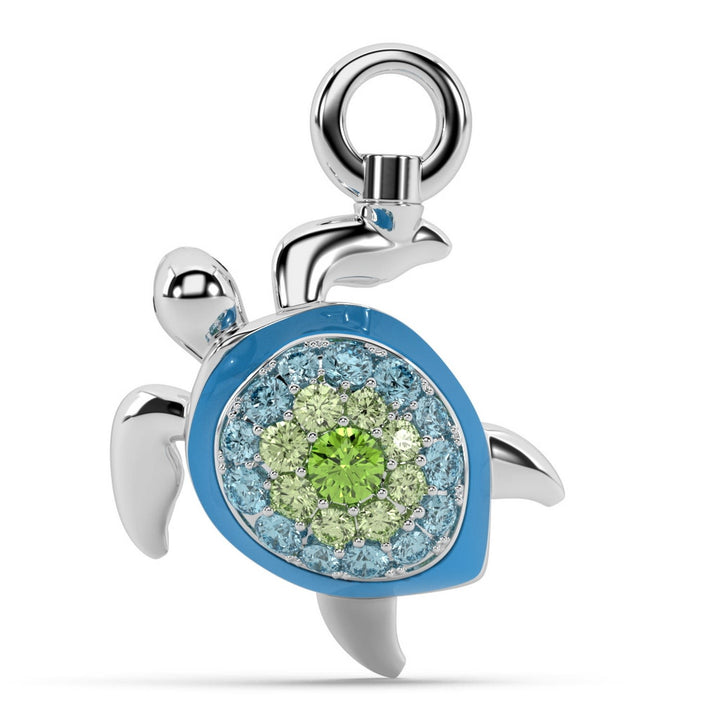 The Gentle Turtle Charm by Oni Fine Jewelry is a meaningful accessory that embodies wisdom, longevity, and luck. It beautifully fuses soothing green peridot and blue topaz stones. Its unique twist-and-lock mechanism allows for versatile styling on any necklace, bracelet, or earring, empowering you with positive energies every day.