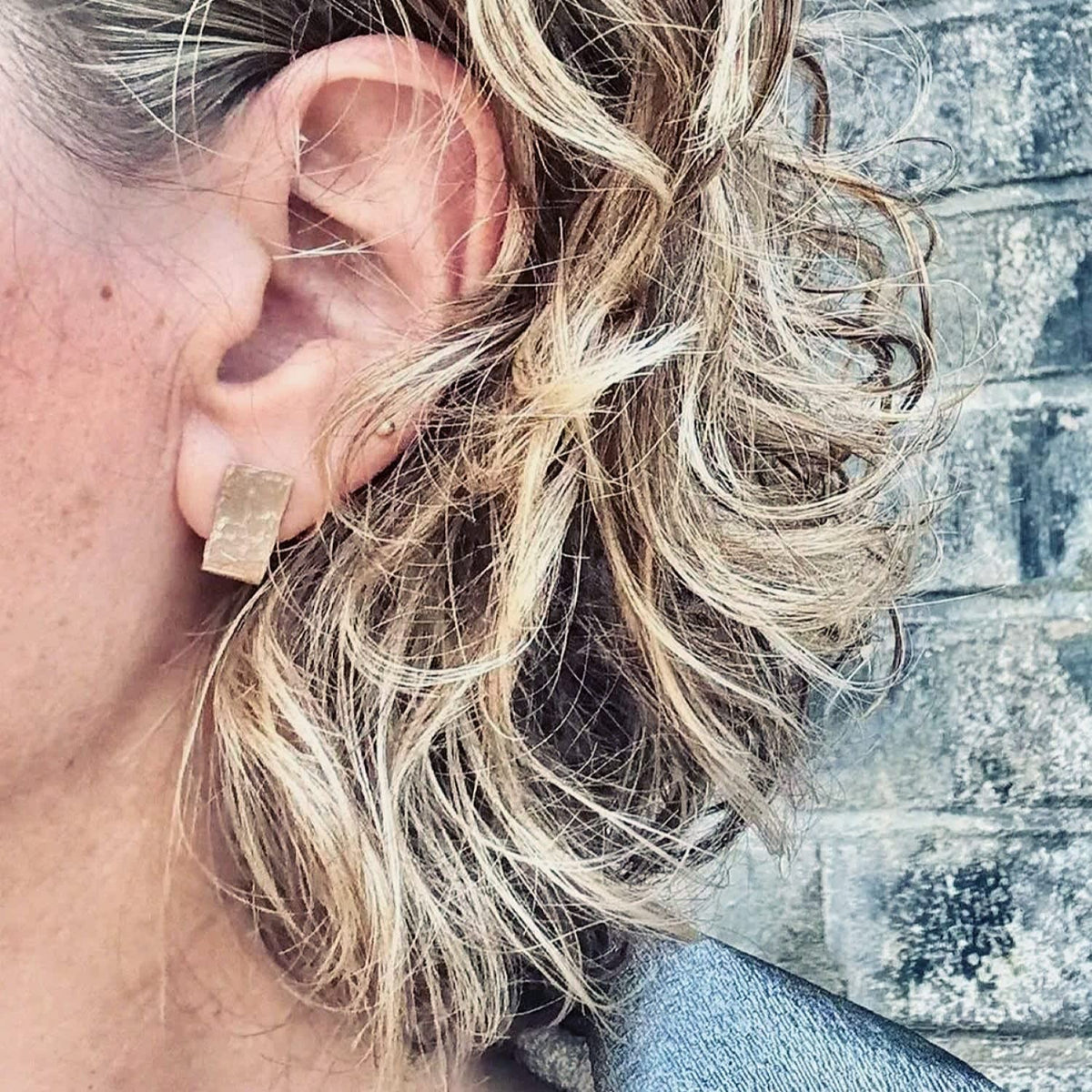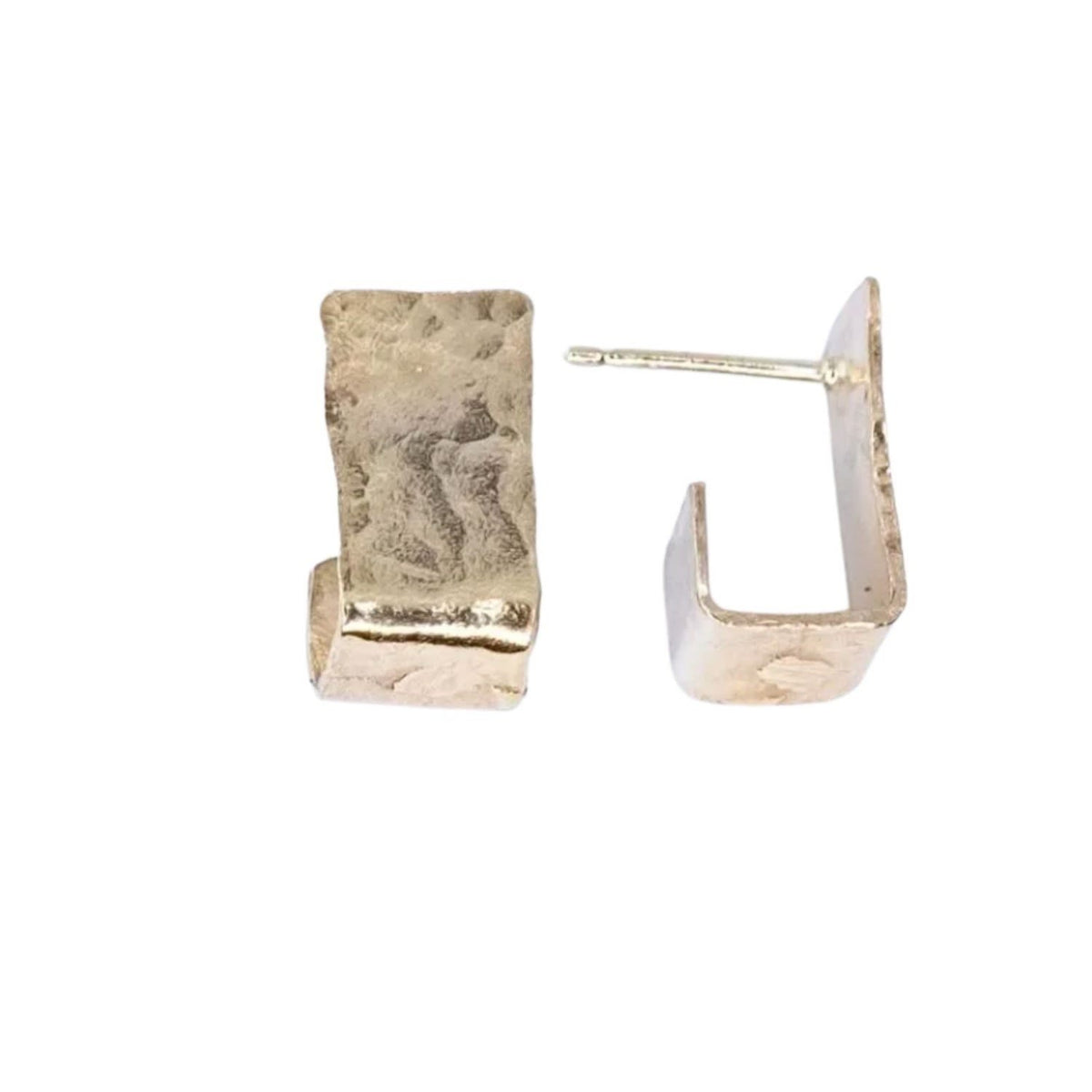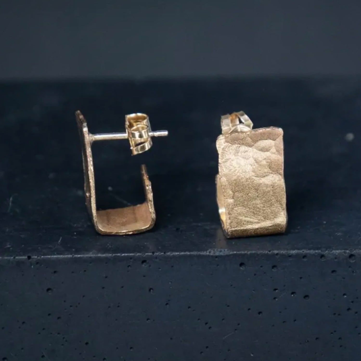 These Brutalist Rectangular Huggie Earrings by Oolo London are a striking everyday statement. With an organic and hammered surface, these small yet chunky hoops are inspired by the raw, geometric shapes of brutalist architecture. Made from 14ct filled gold, they are a high-quality, contemporary accessory built to last for years.