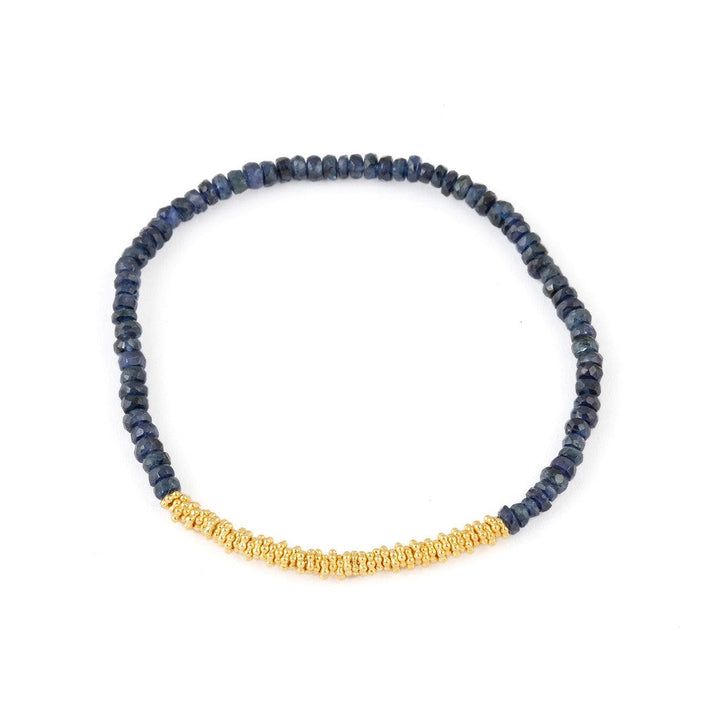 Gold Disc Stretch Bracelet With Blue Sapphires