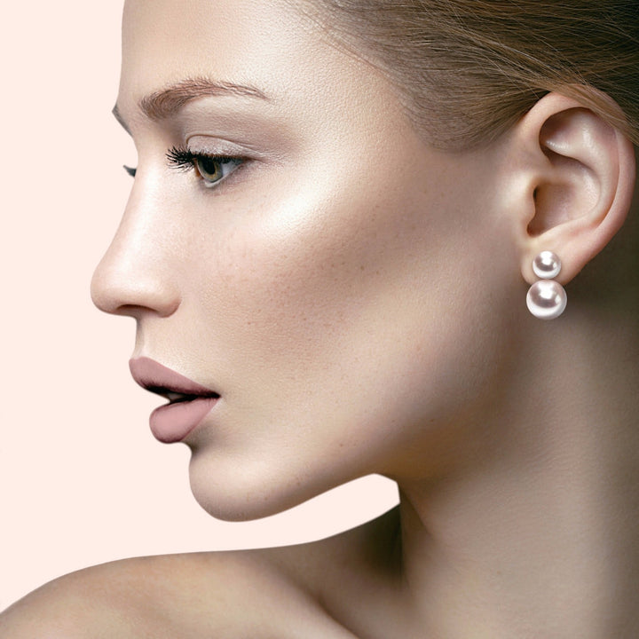 These Duet White Pearl Earrings Large Gold by Ora Pearls are stunning double freshwater pearl dangle earrings. They feature freshwater pearls hanging from 9-karat gold studs, creating a delicate and elegant dangle design. The earrings' natural glow and sophisticated look make them a perfect accessory for adding a touch of classic beauty to any outfit.