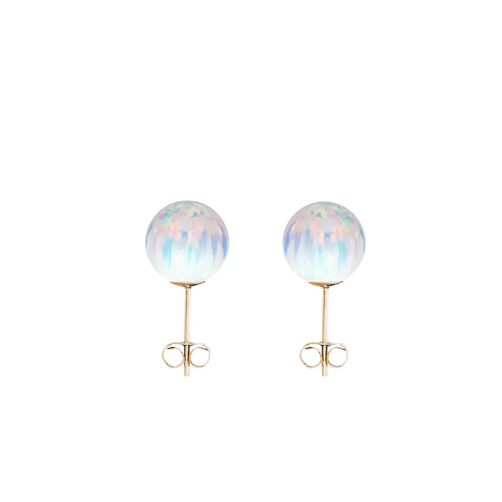The Ice Opal Stud Earrings are a stunning and iridescent pair of earrings. They are made from 9ct solid gold and feature lab-grown white opal studs. The opals show gorgeous flashes of neon colors when they move, making these earrings a beautiful and unique accessory.