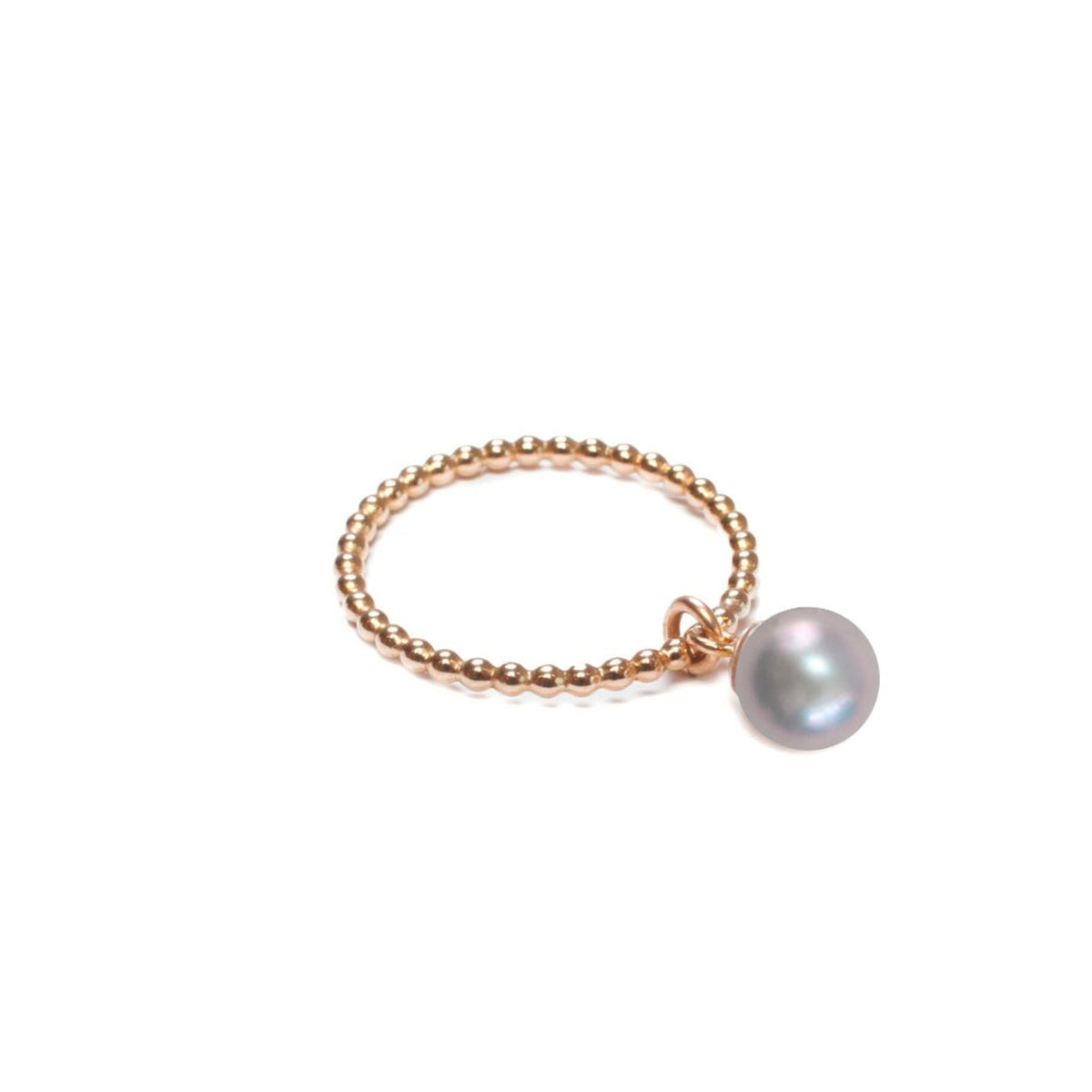 This ring is crafted from 14-karat gold-filled material and features a grey freshwater pearl charm. It is packaged in an ORA gift box.