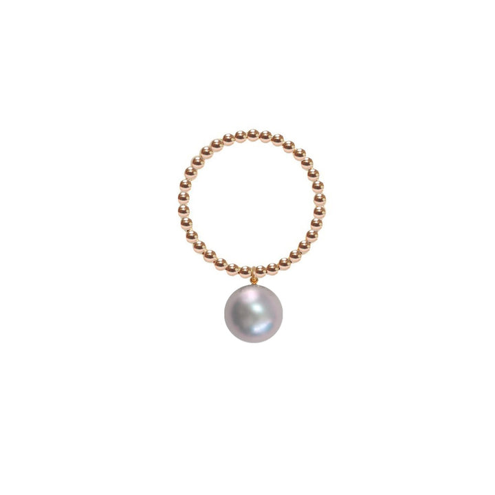 This Gold Orb Ring Grey Pearl by Ora Pearls is a modern and elegant accessory. The 14ct gold-filled beaded band features a beautiful grey freshwater pearl charm. Its design allows it to be worn alone for a subtle, sophisticated statement or stacked with other pieces to create a unique, layered look. This ring is a timeless piece that blends classic pearl beauty with a contemporary aesthetic.