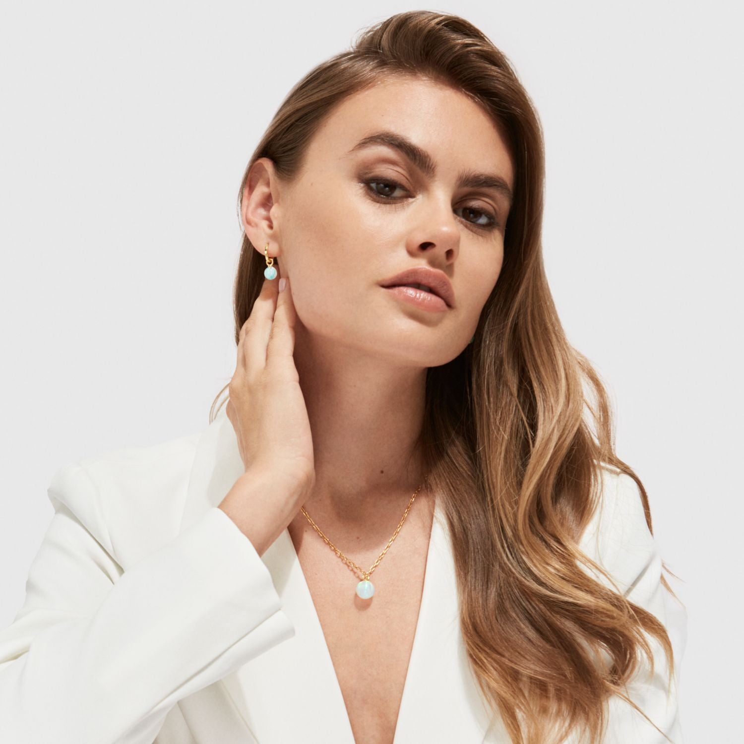These earrings are made with 14ct gold vermeil and a lab-grown sea opal.