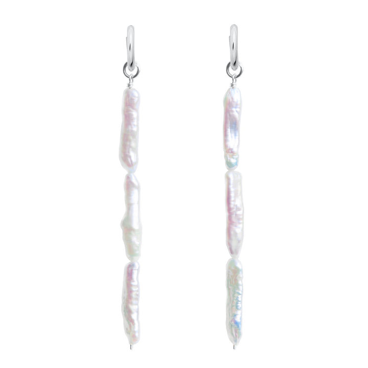 These handmade earrings are crafted from 925 sterling silver and feature freshwater pearls. Each pearl is unique and may vary slightly in size, shape, and color.