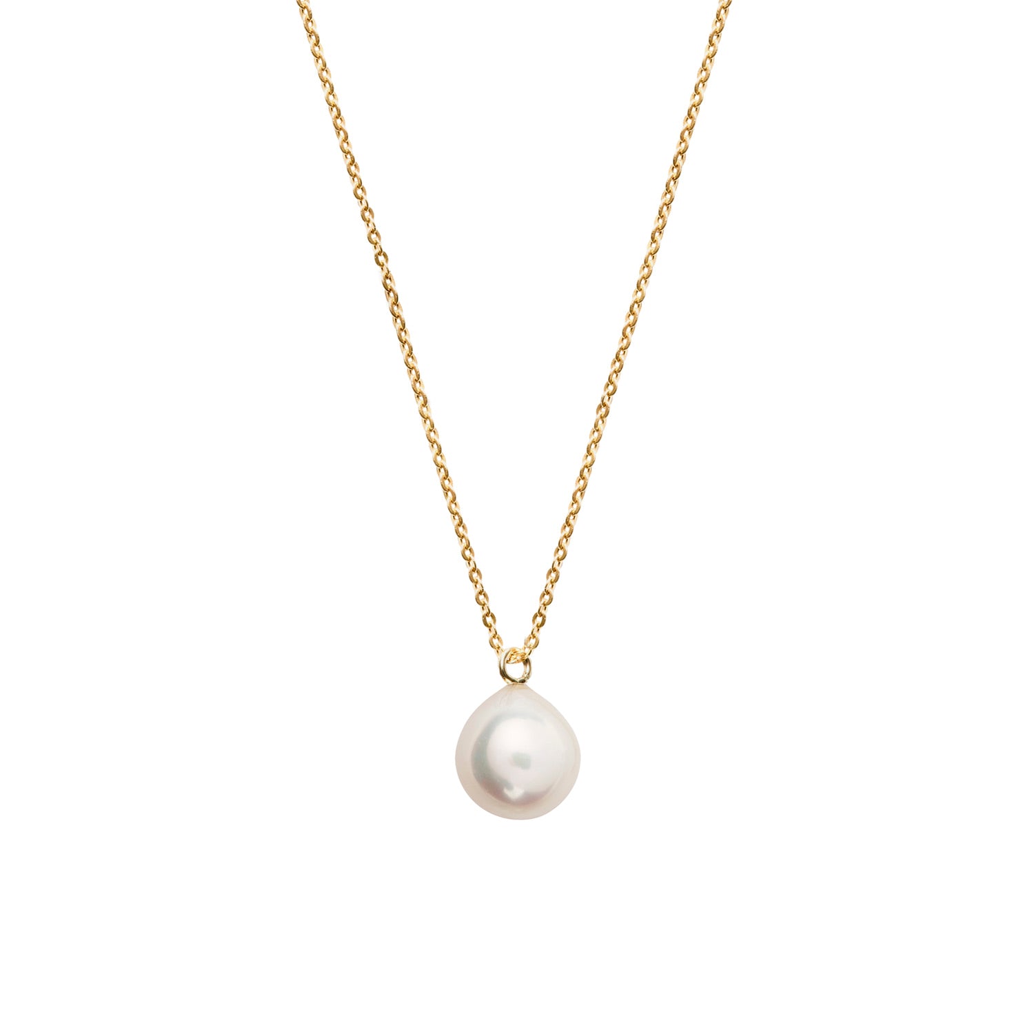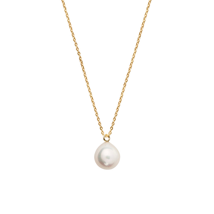 This necklace is made with a fine solid 9ct yellow gold chain and a white freshwater pearl. It has an adjustable length from 16-18 inches.