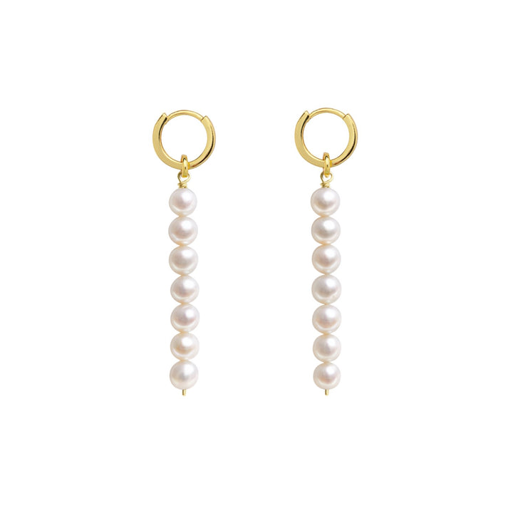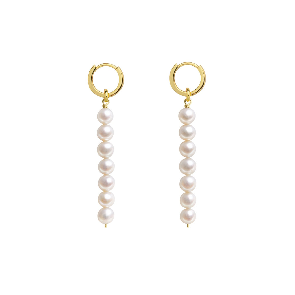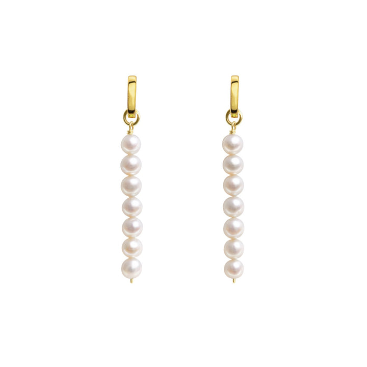 These earrings are made with 14ct gold vermeil hoops and feature white freshwater pearls.