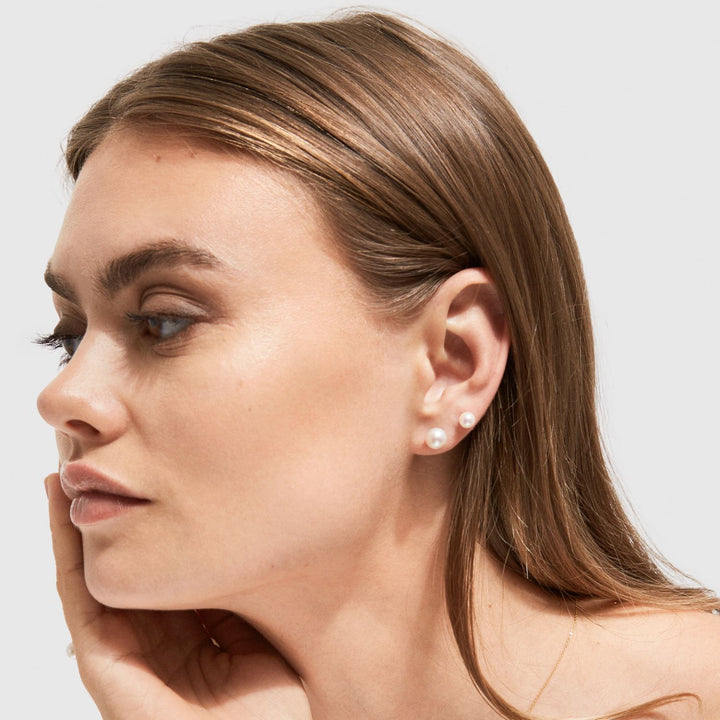 The Medium White Pearl Studs Earrings by Ora Pearls are a classic and timeless accessory. They feature round white freshwater pearls on 9ct gold studs. Each pearl is unique, and the simple design makes these earrings a versatile staple for any occasion. They are a perfect choice for those who love traditional style with a touch of elegance.