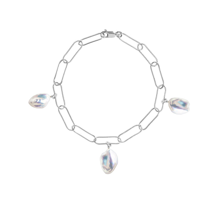 Aurelia Keshi Pearl Large Link Chain Bracelet - Silver & White