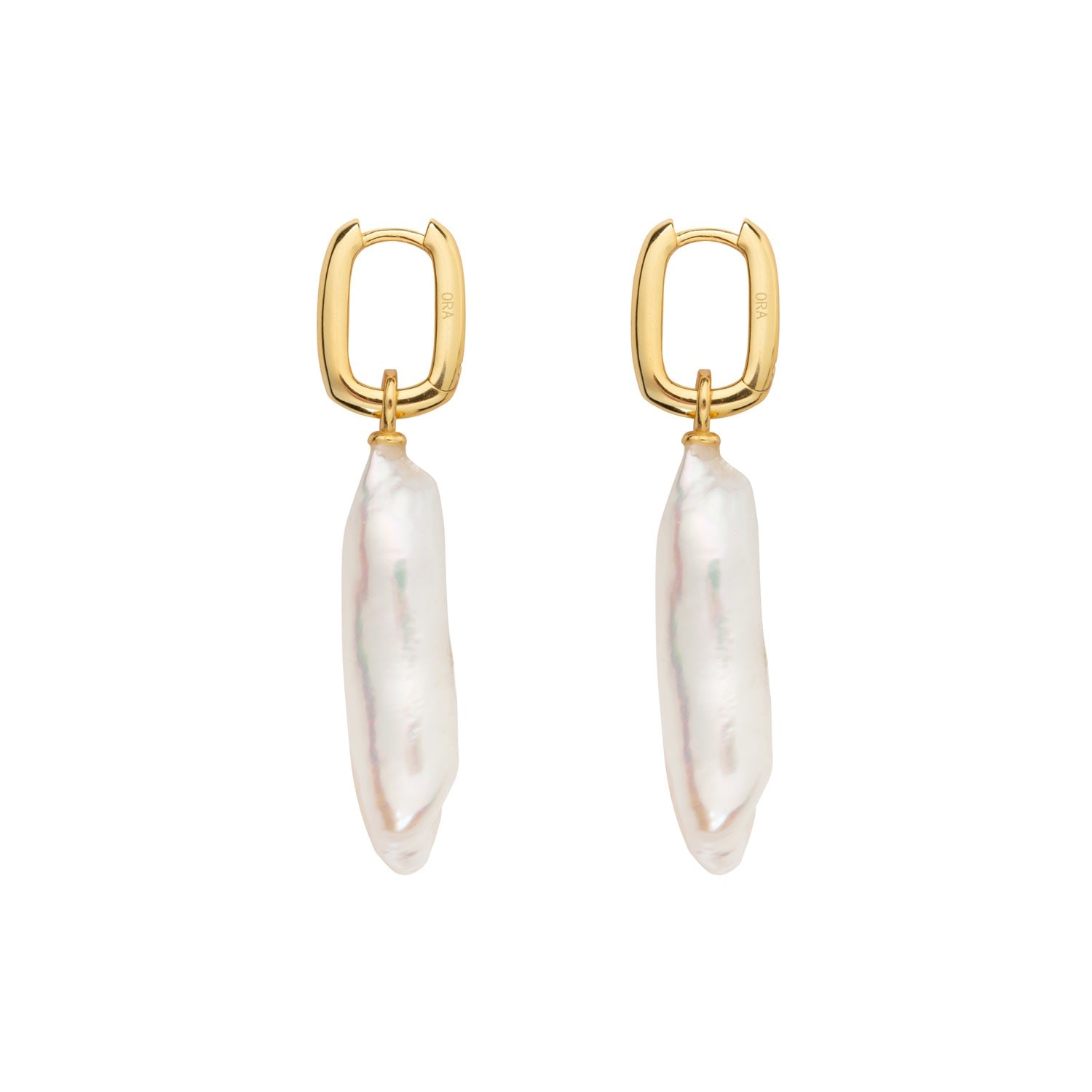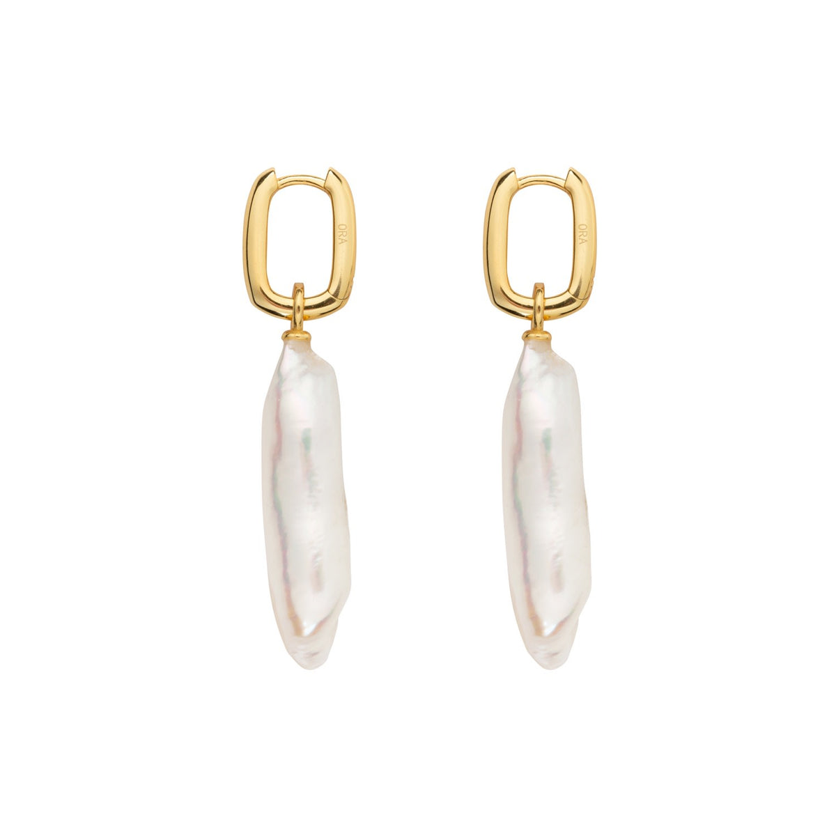 Aetia Long Baroque Pearl Hoop Earrings - Gold - Large