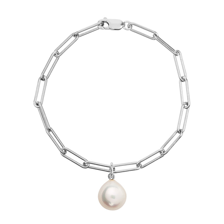 This bracelet is crafted from 925 sterling silver with a freshwater pearl charm.
