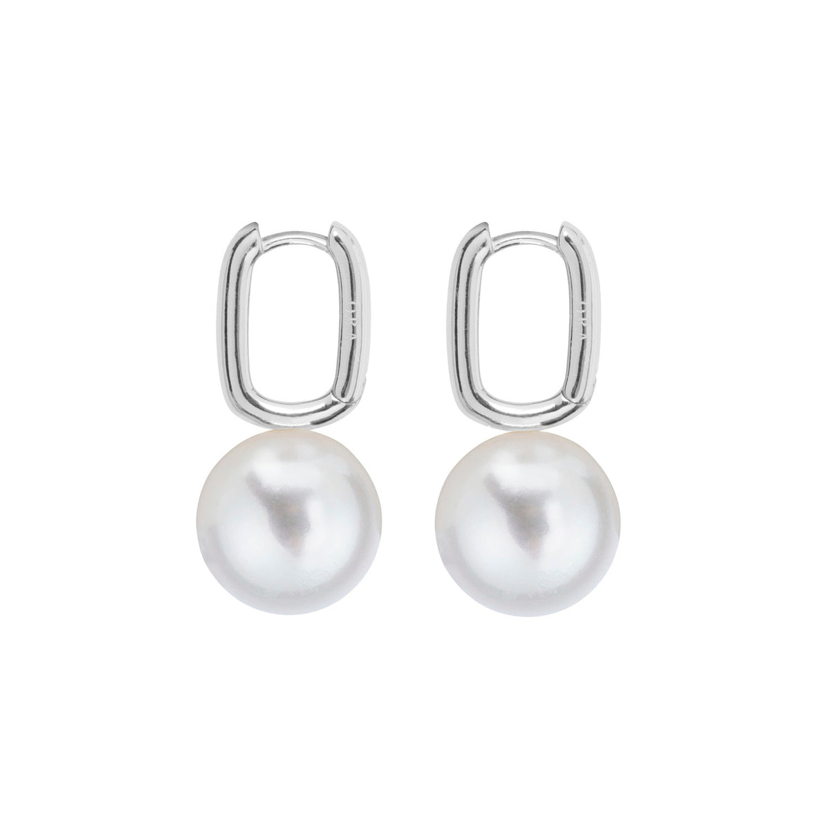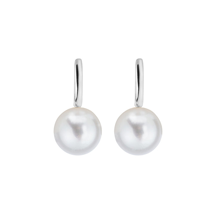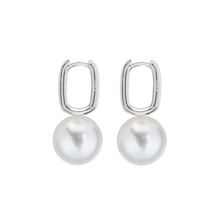 These handcrafted earrings are made of 925 sterling silver and feature extra-large freshwater pearls with a diameter of 11-12mm. The hoop dimensions are 14mm in height, 2mm in width, and 10.5mm in depth.