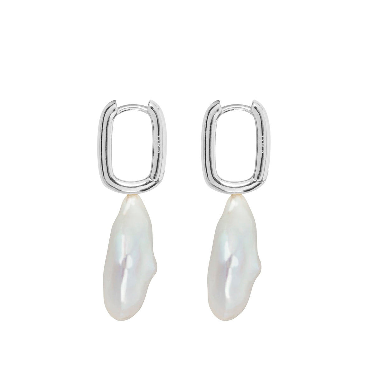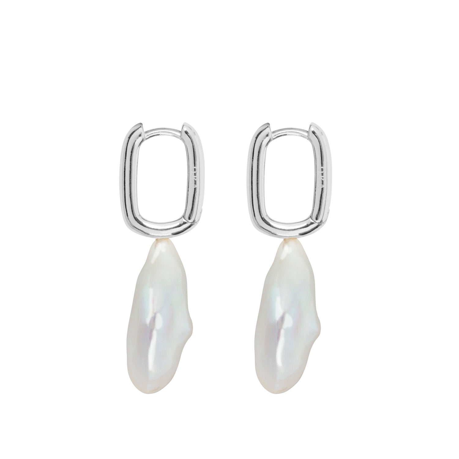 Aetis Flat Baroque Pearl Hoop Earrings-Silver