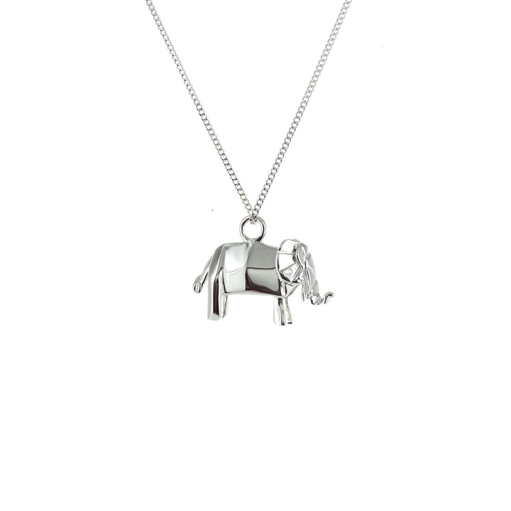 The Mini Elephant Necklace Silver by Origami Jewellery is a unique and adorable accessory. Inspired by the Japanese art of paper-folding, this necklace features a charming elephant pendant in sterling silver on a chain. It is a fun and creative piece that adds a touch of whimsy to any outfit.